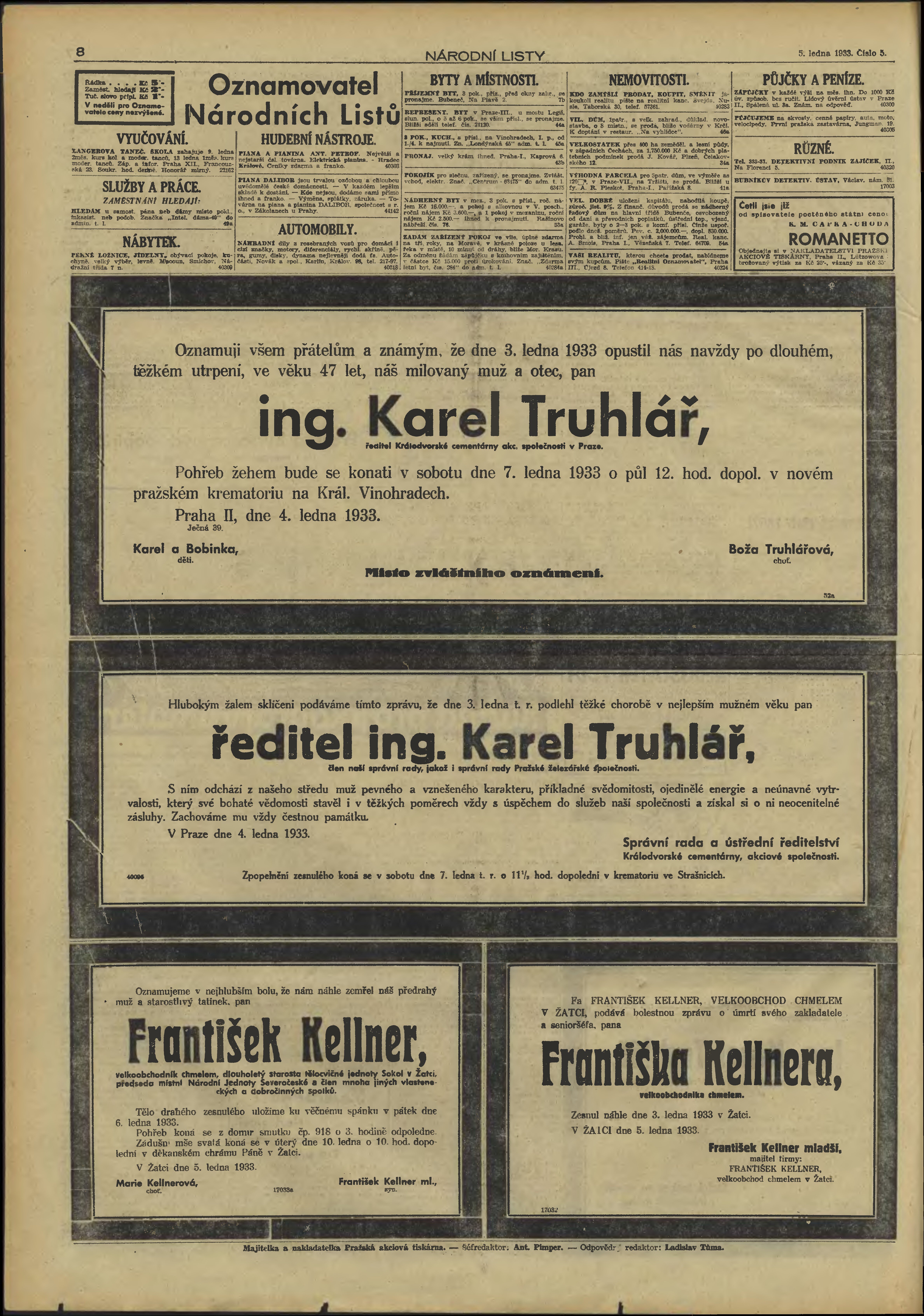 * Datum vydání výtisku: 5.1.1933 Číslo výtisku: 5