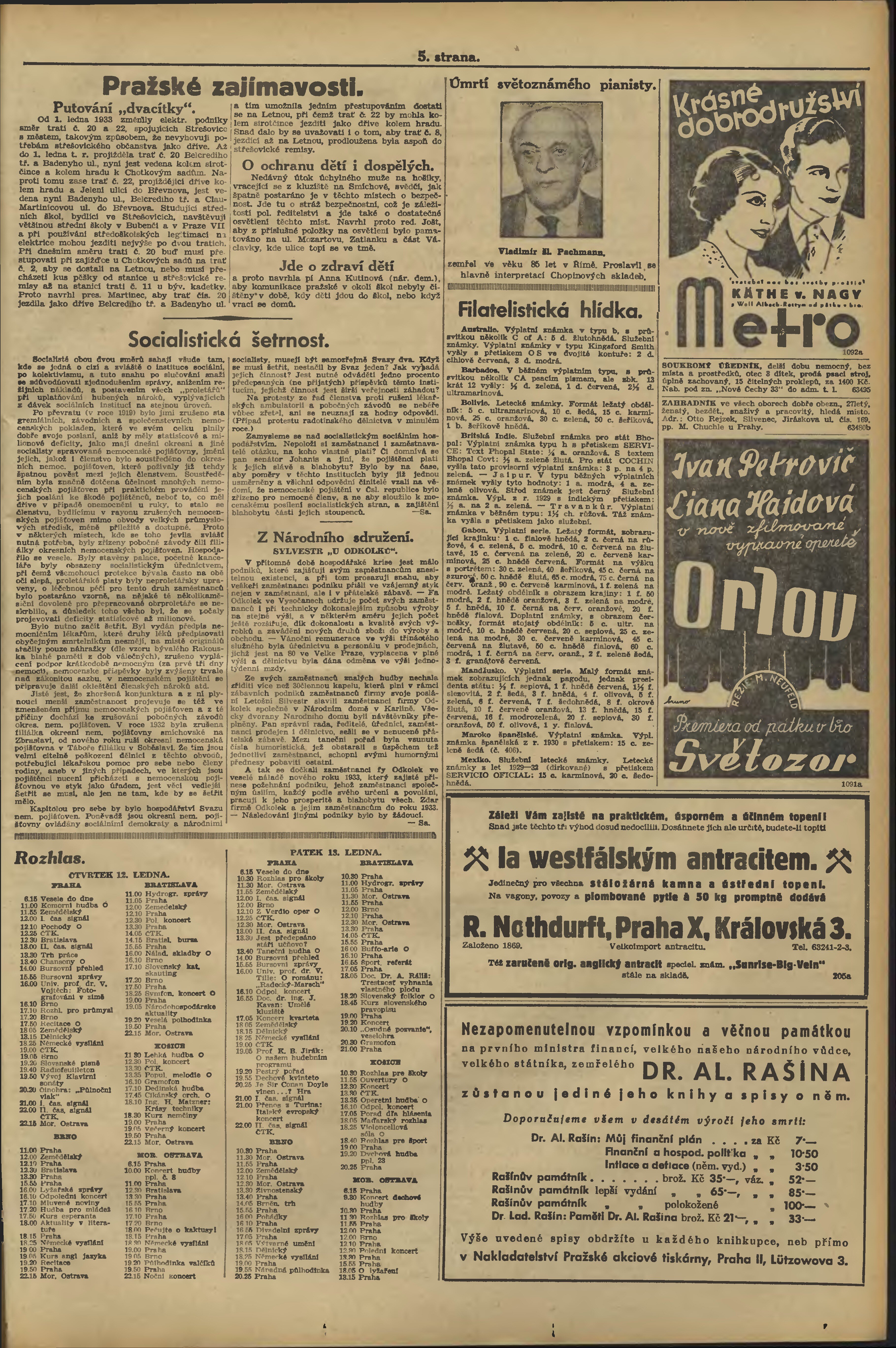 * Datum vydání výtisku: 11.1.1933 Číslo výtisku: 11 Poznámky k výtisku: večerní vydání;