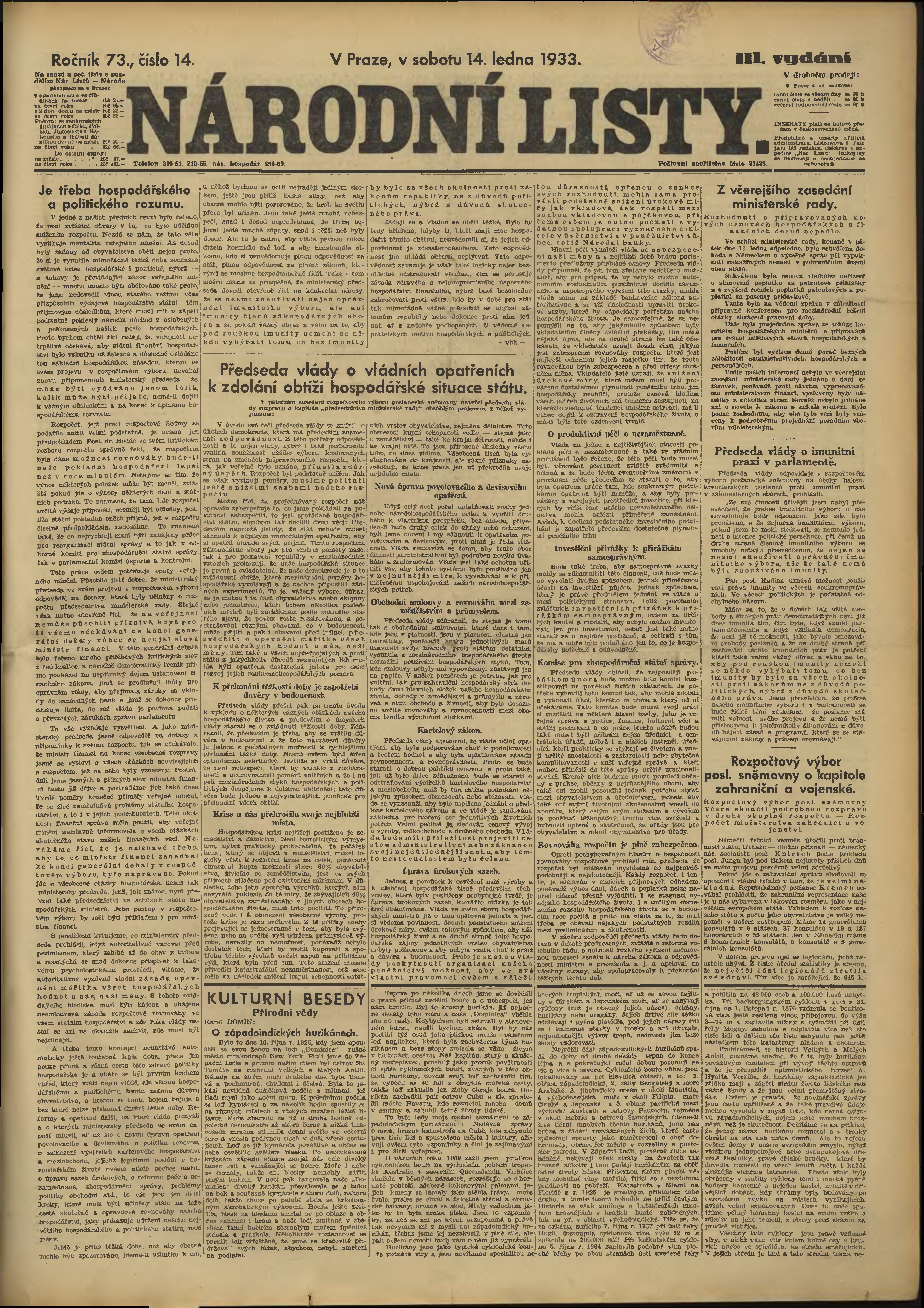 * Datum vydání výtisku: 14.1.1933 Číslo výtisku: 14