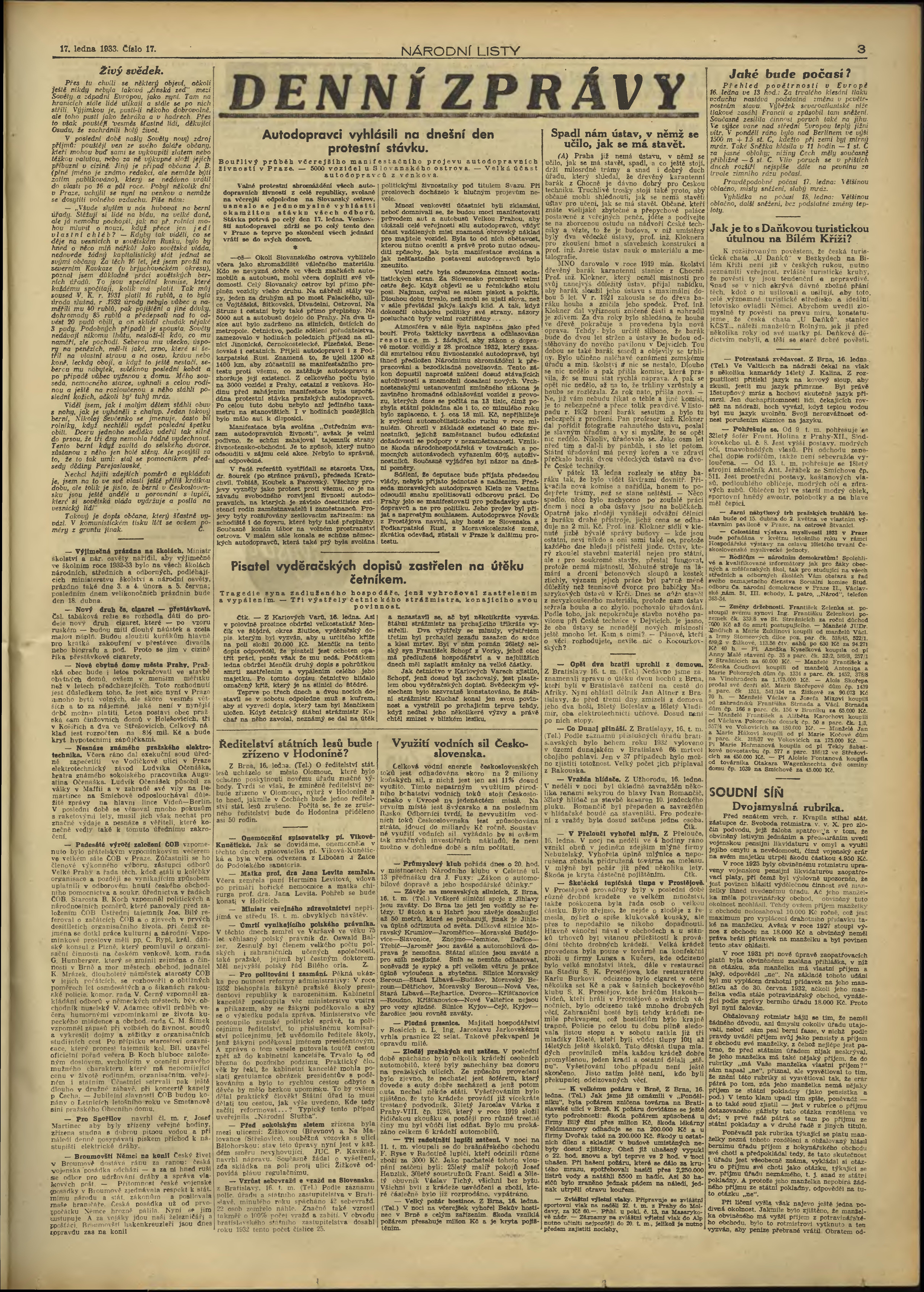* Datum vydání výtisku: 17.1.1933 Číslo výtisku: 17