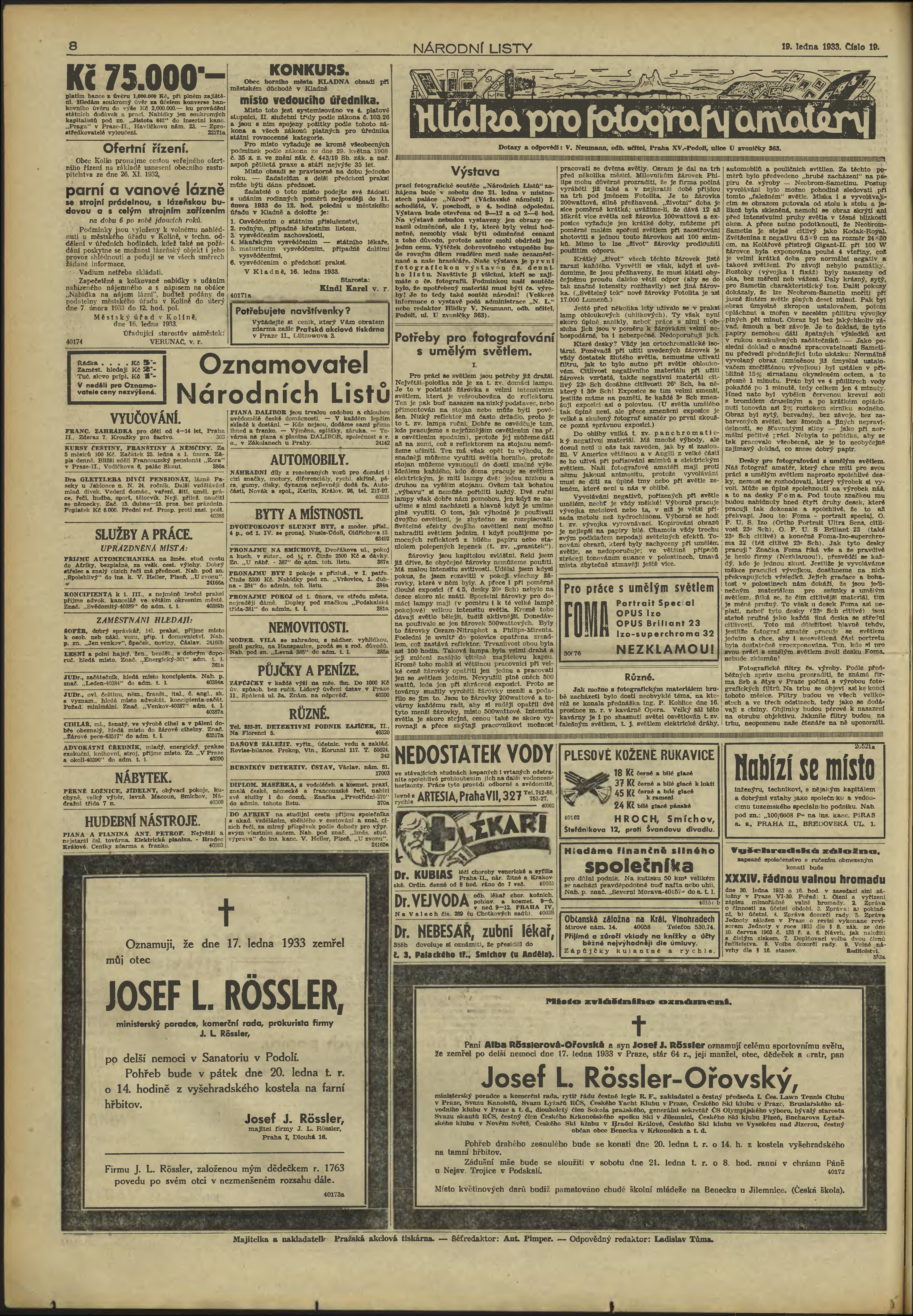 * Datum vydání výtisku: 19.1.1933 Číslo výtisku: 19