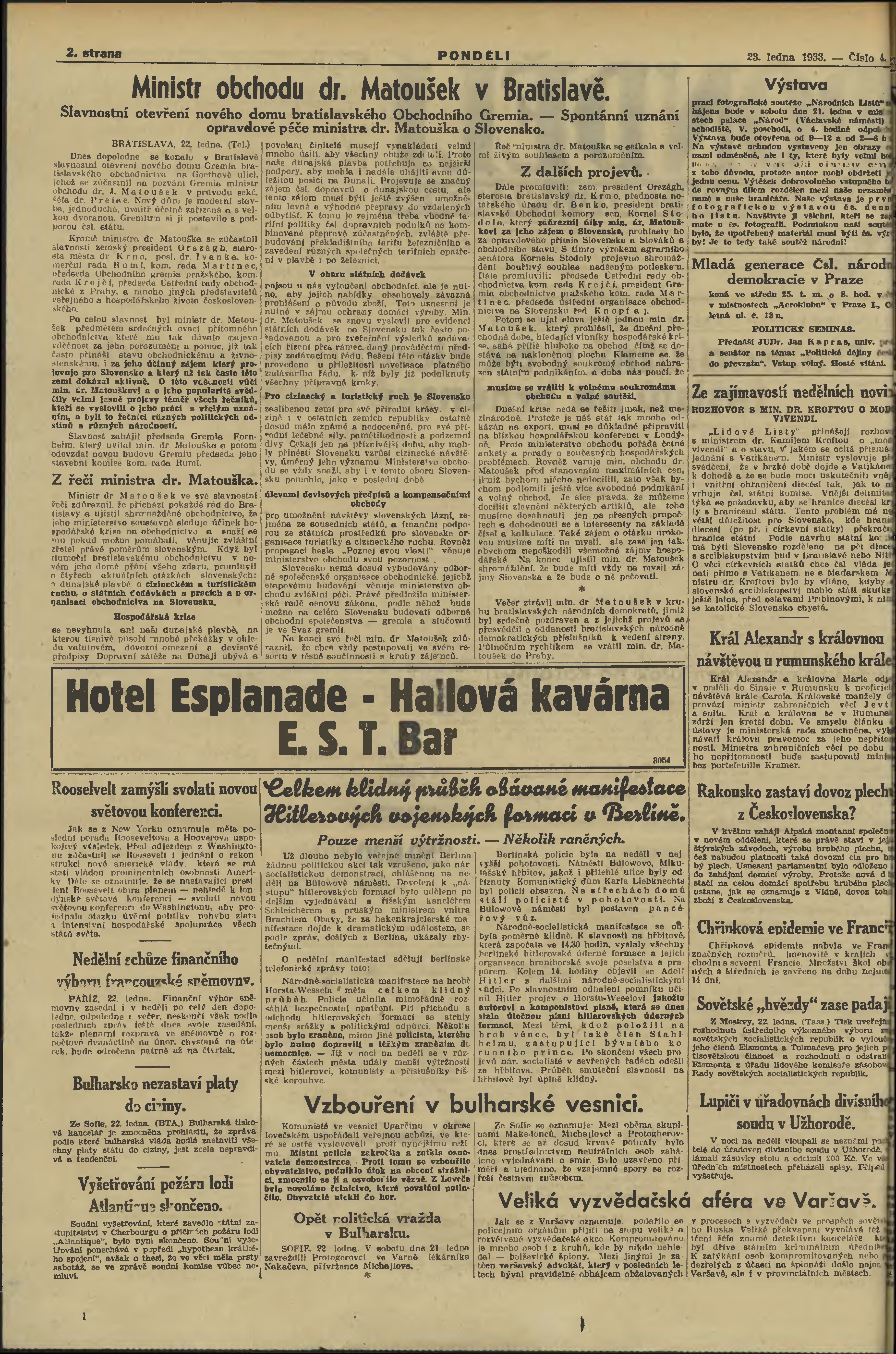 * Datum vydání výtisku: 23.1.1933 Číslo výtisku: 4