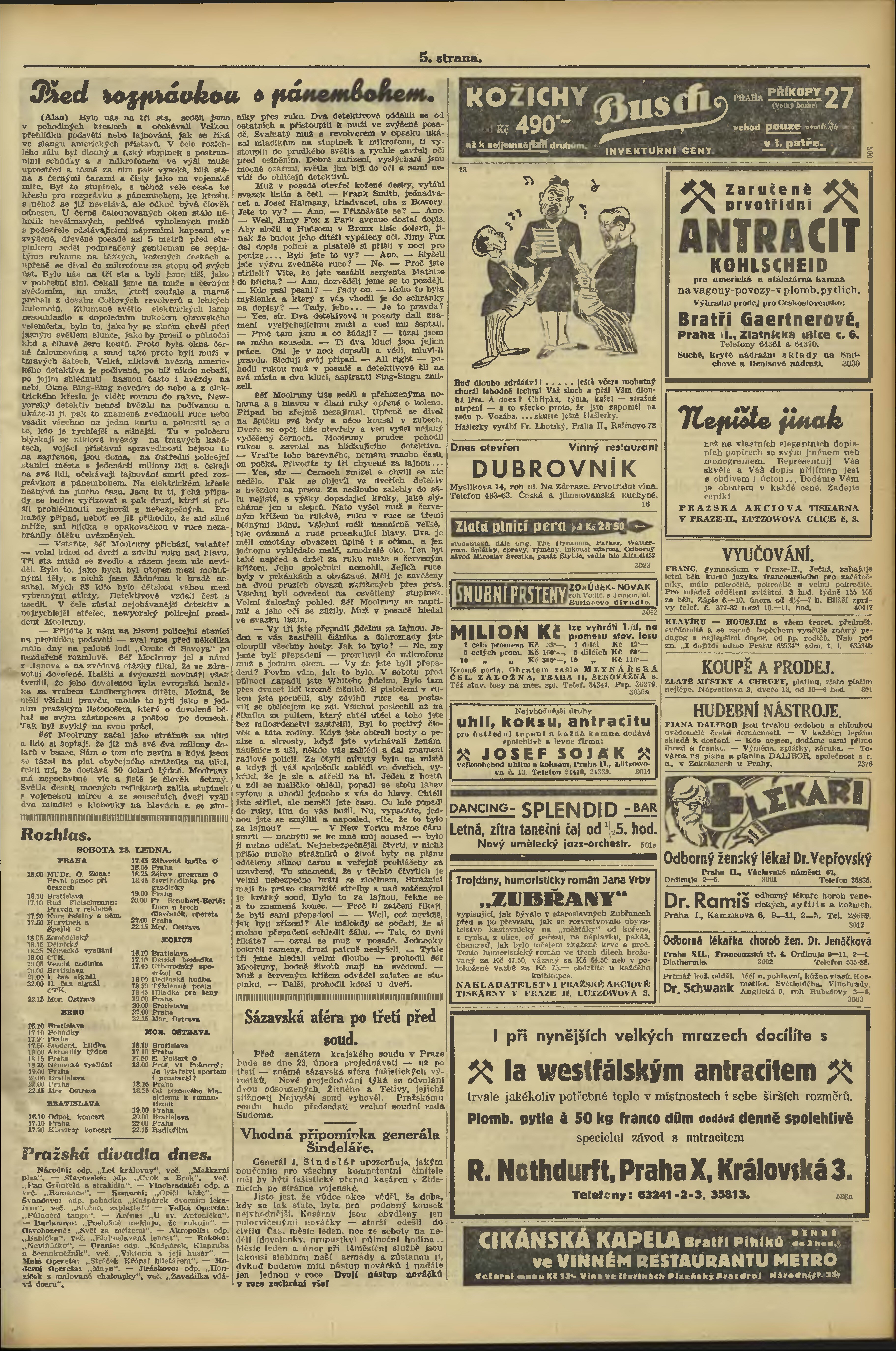 * Datum vydání výtisku: 28.1.1933 Číslo výtisku: 28 Poznámky k výtisku: večerní vydání;