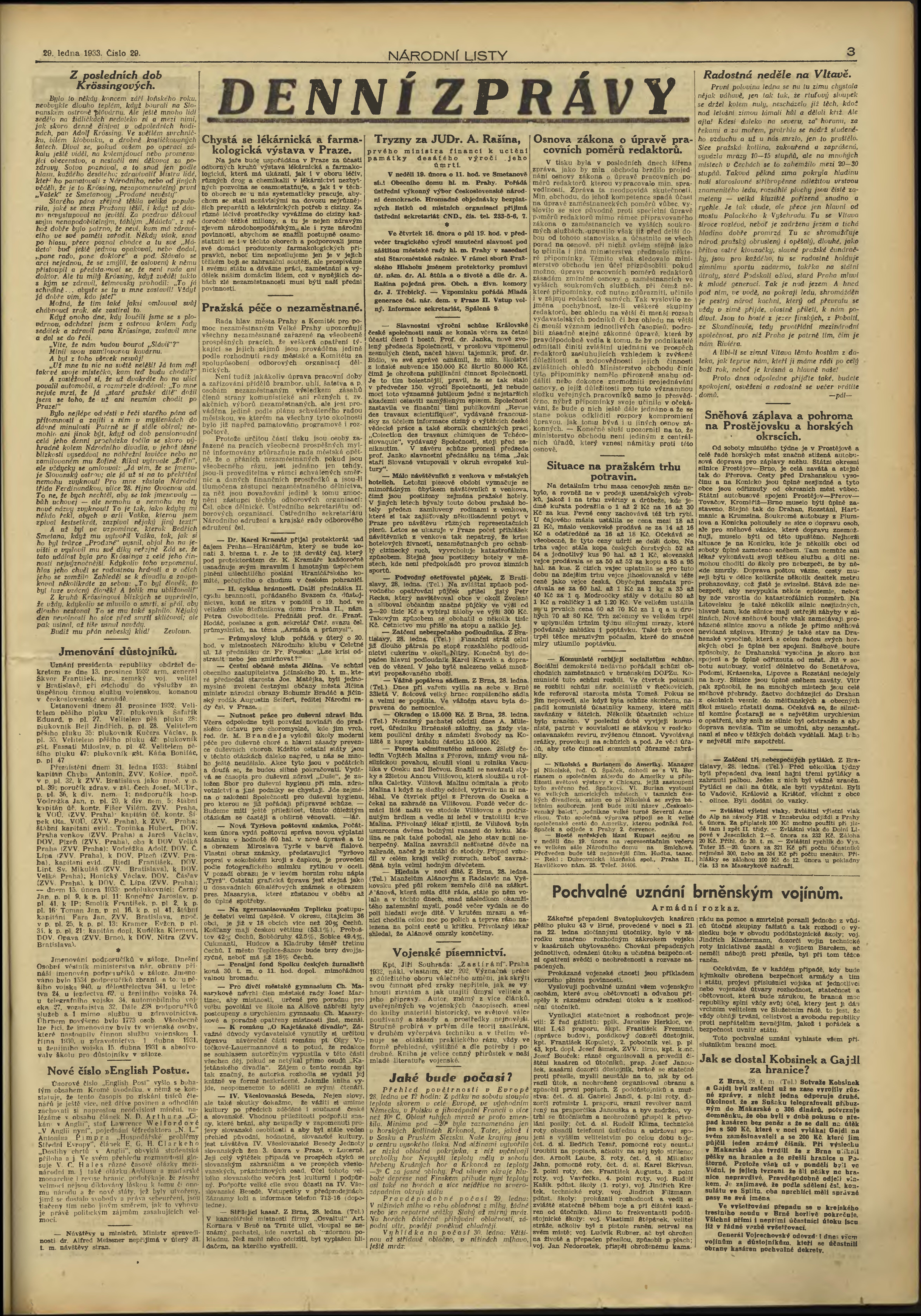 * Datum vydání výtisku: 29.1.1933 Číslo výtisku: 29