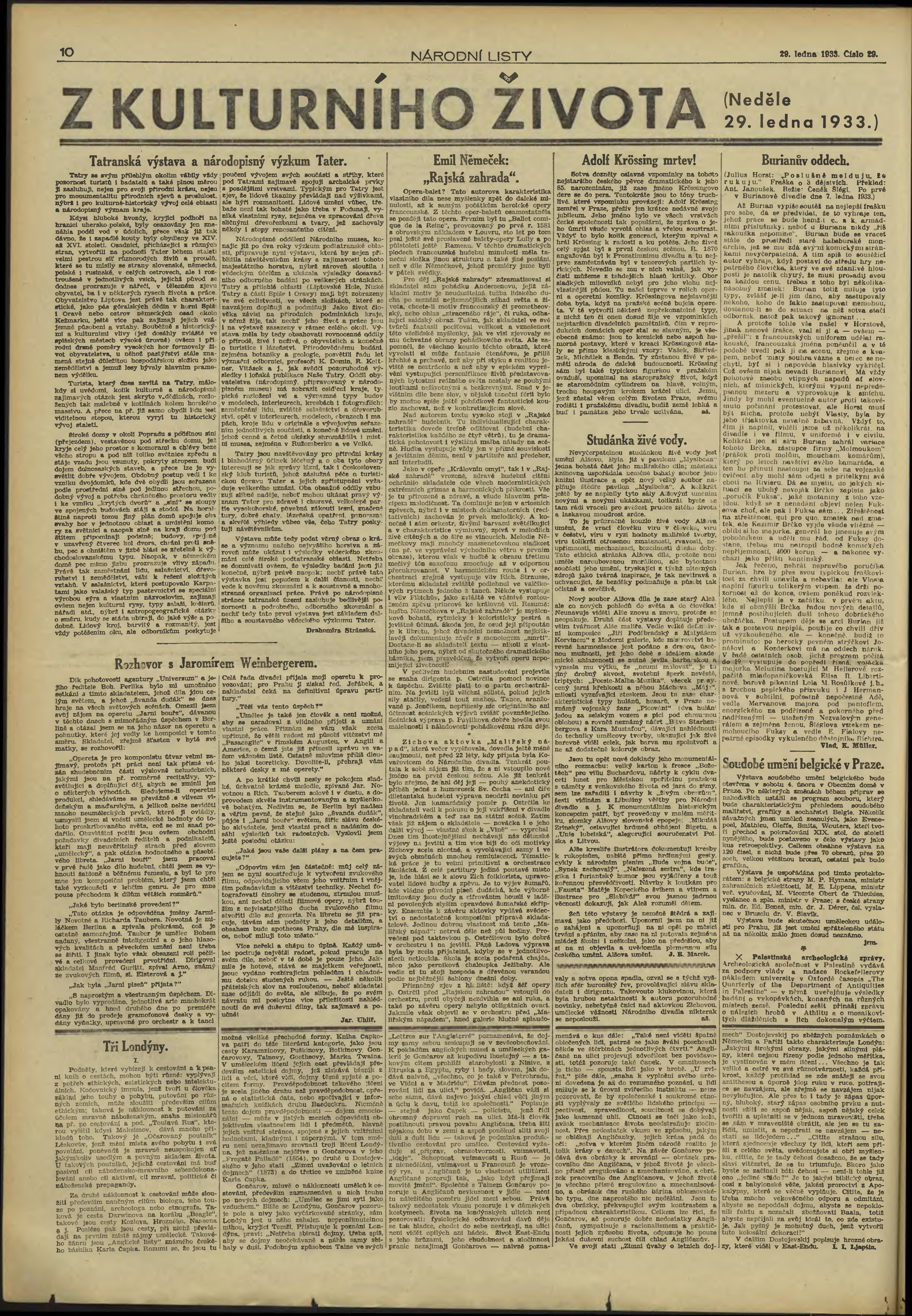 * Datum vydání výtisku: 29.1.1933 Číslo výtisku: 29