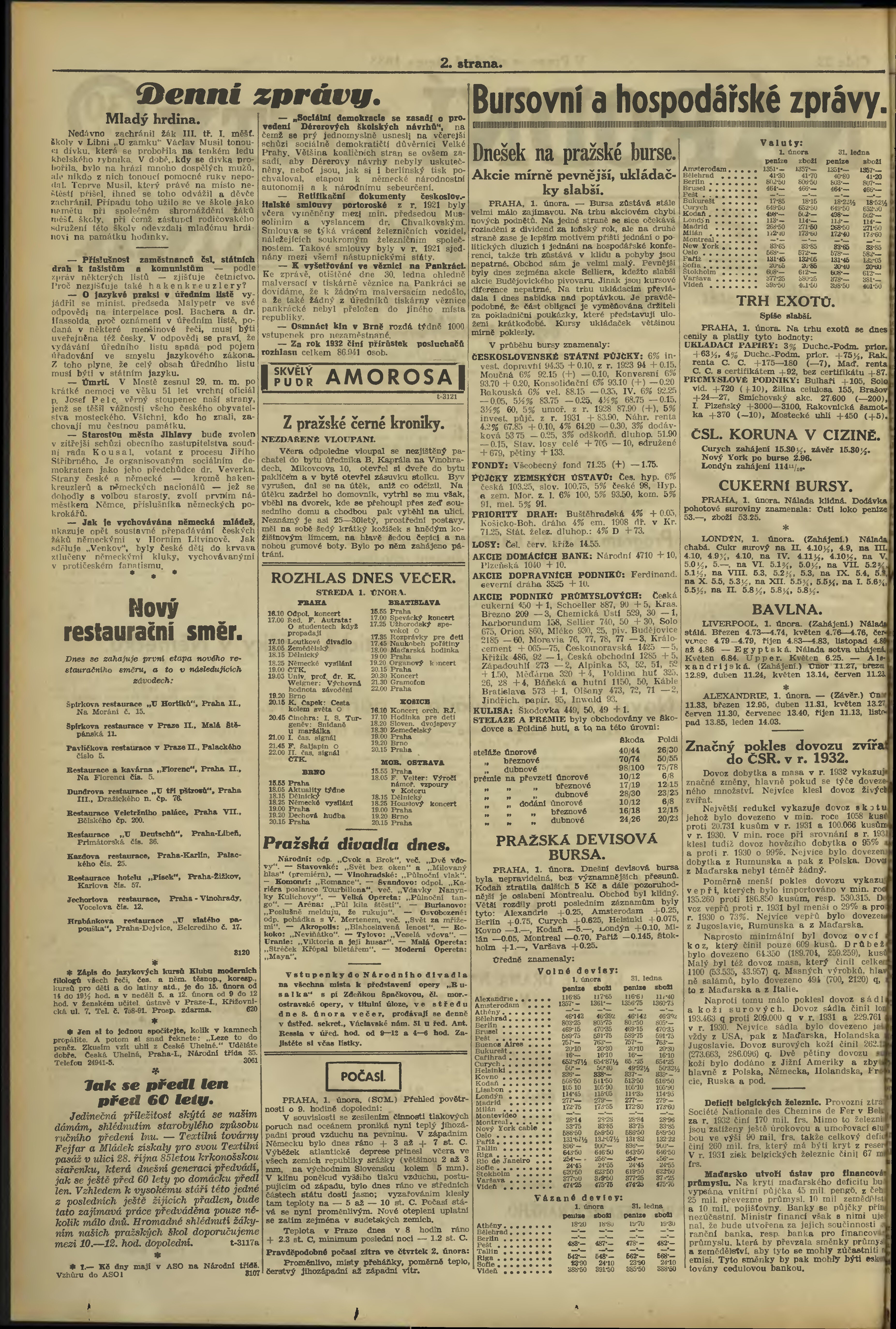 * Datum vydání výtisku: 1.2.1933 Číslo výtisku: 32 Poznámky k výtisku: večerní vydání;