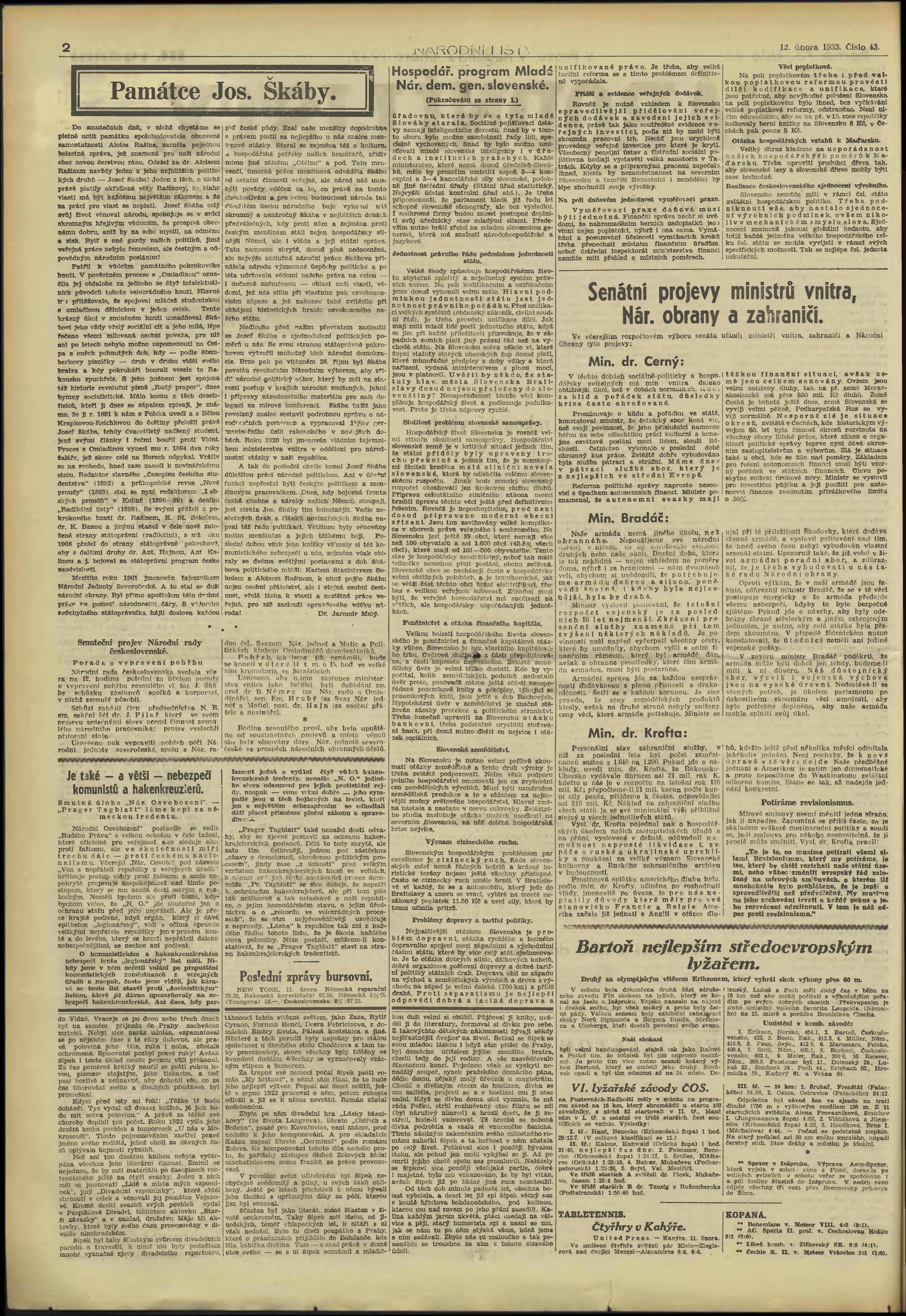 * Datum vydání výtisku: 12.2.1933 Číslo výtisku: 43