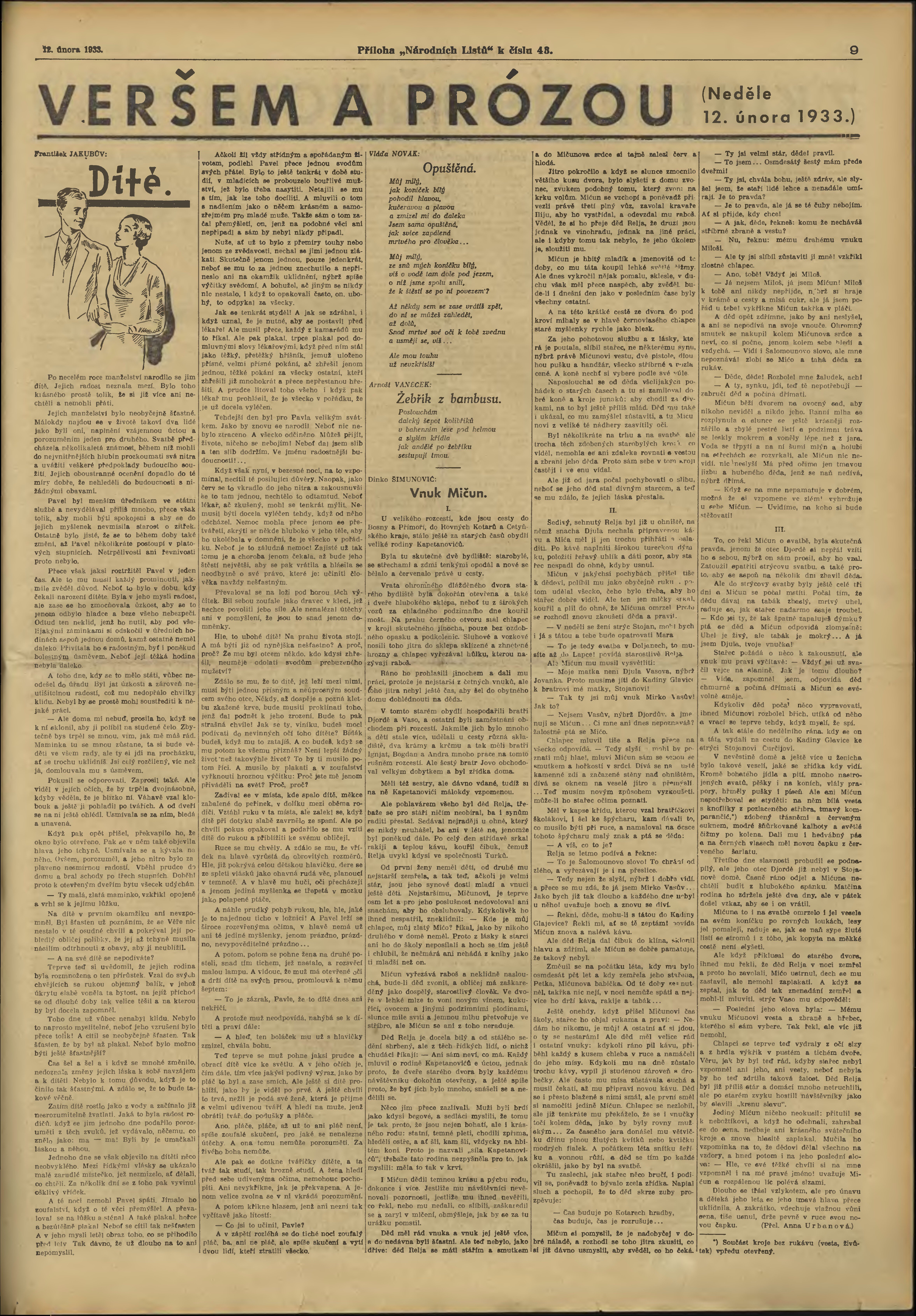 * Datum vydání výtisku: 12.2.1933 Číslo výtisku: 43
