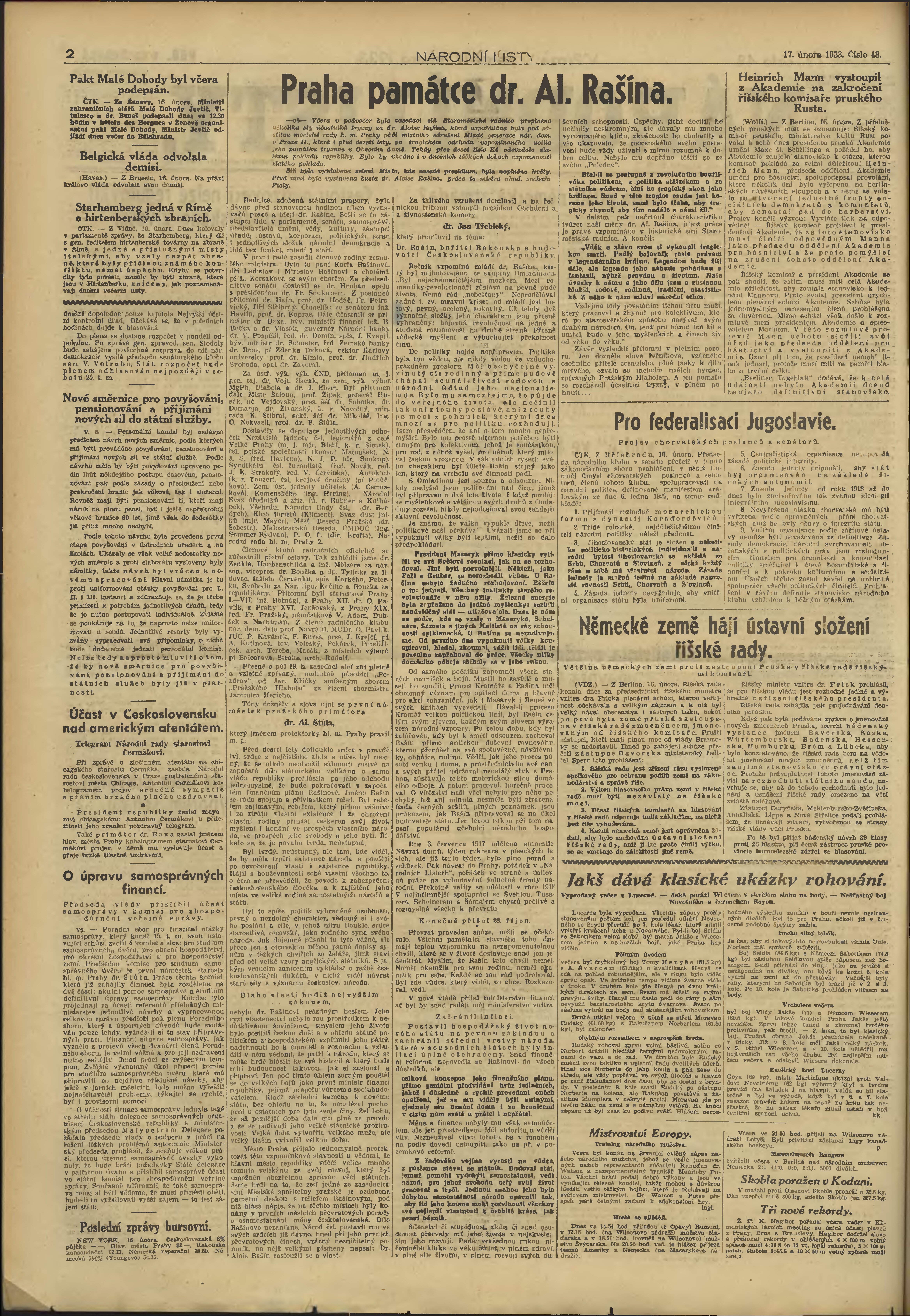 * Datum vydání výtisku: 17.2.1933 Číslo výtisku: 48