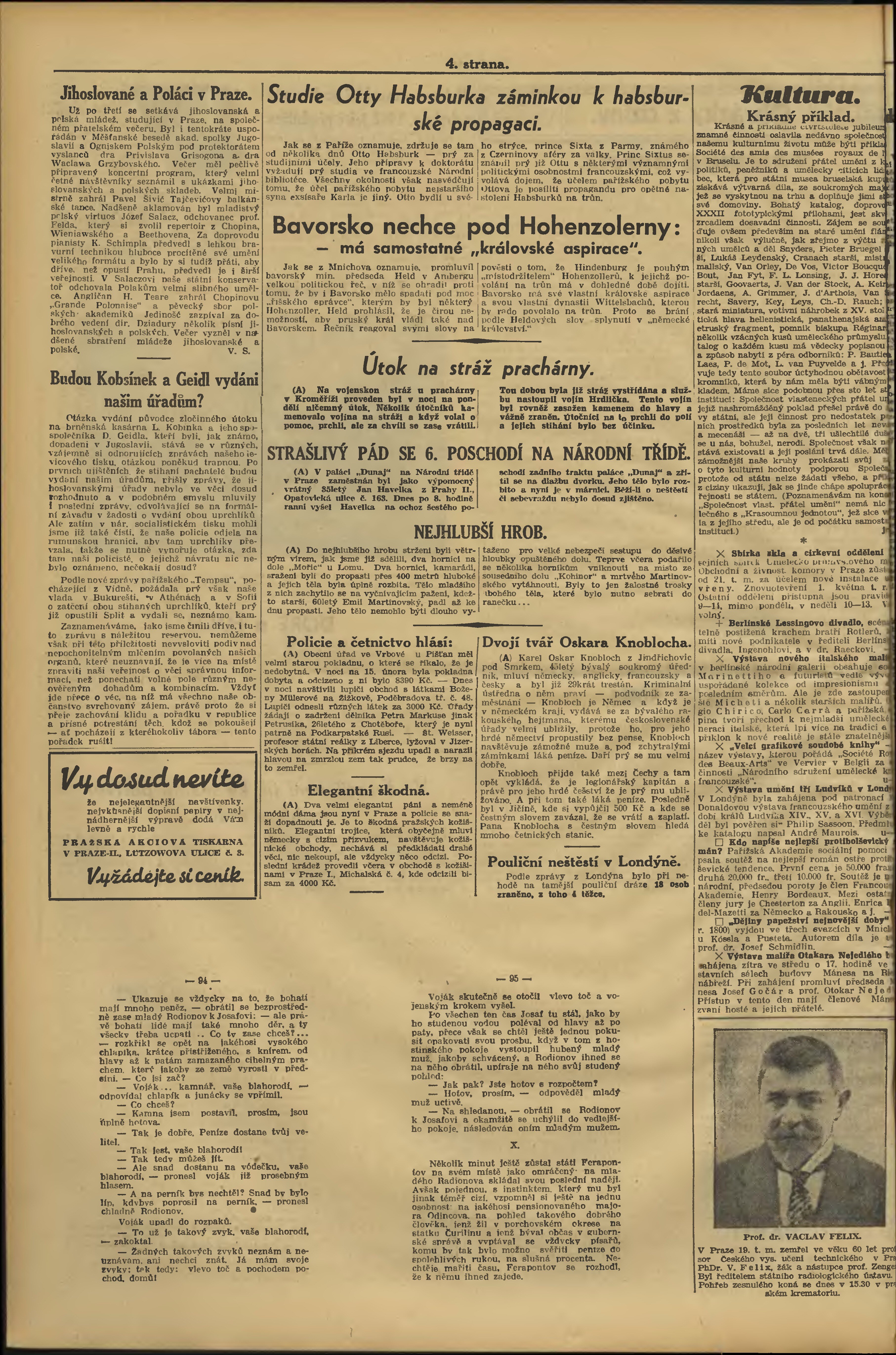 * Datum vydání výtisku: 21.2.1933 Číslo výtisku: 52 Poznámky k výtisku: večerní vydání;