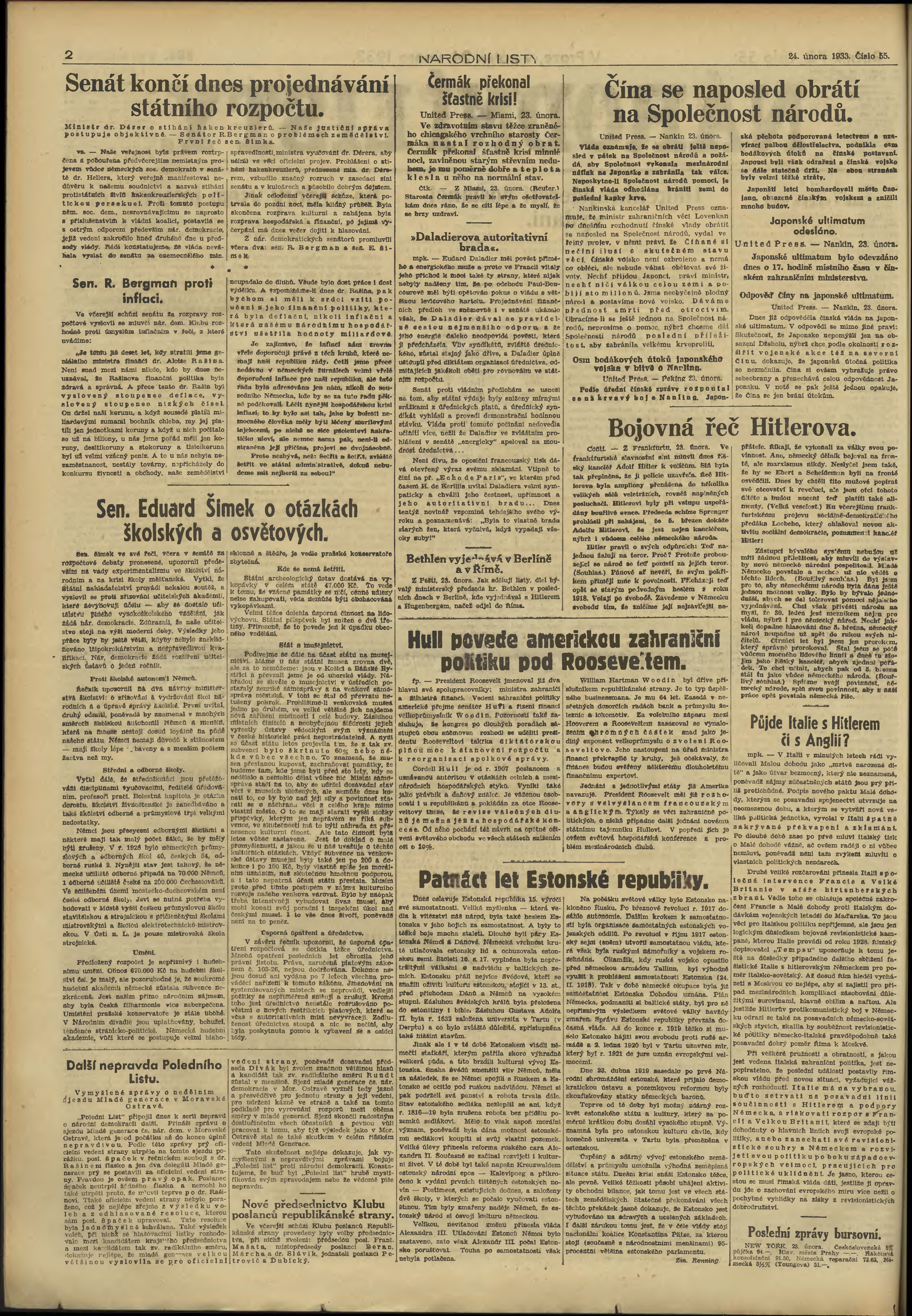 * Datum vydání výtisku: 24.2.1933 Číslo výtisku: 55
