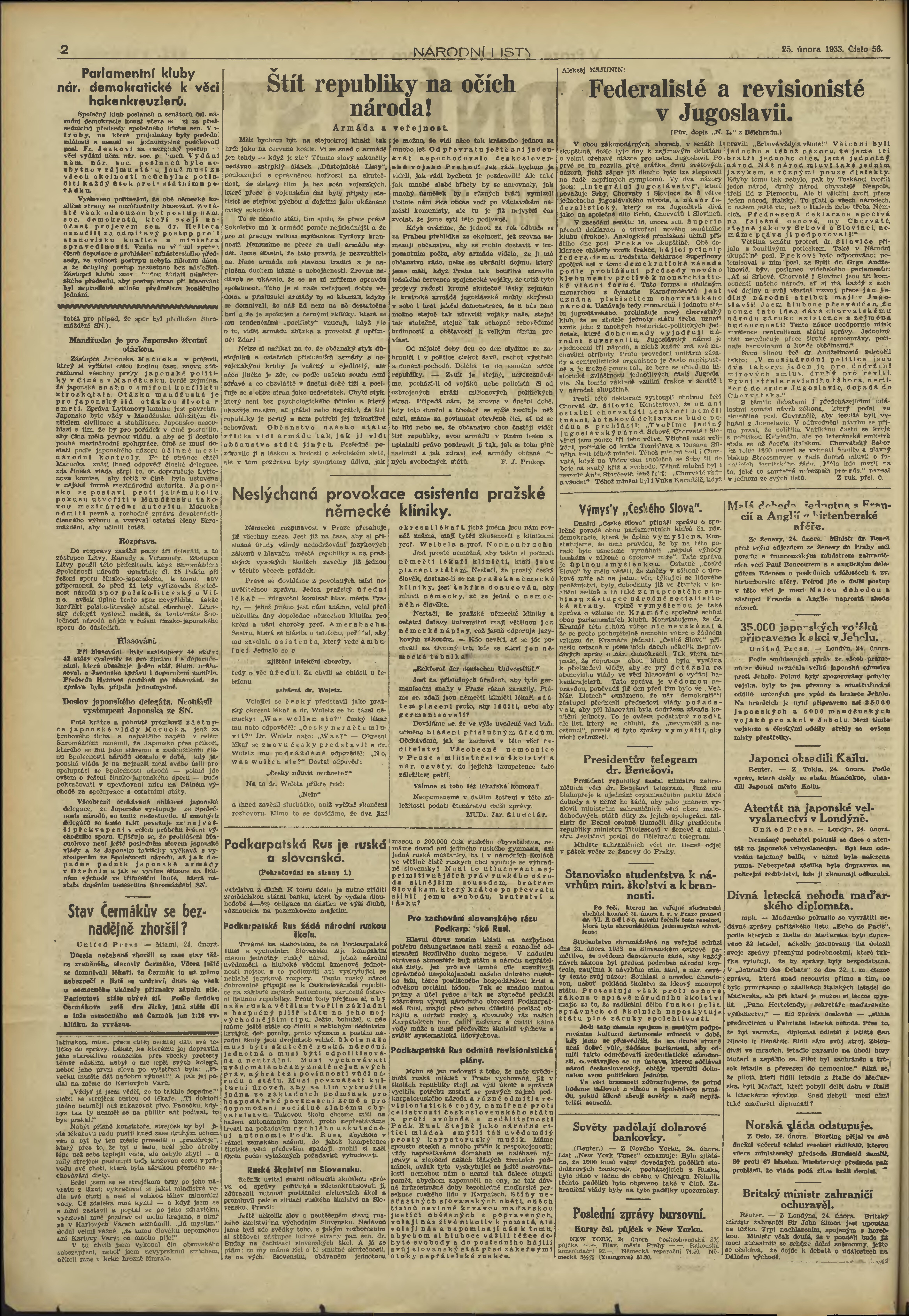 * Datum vydání výtisku: 25.2.1933 Číslo výtisku: 56