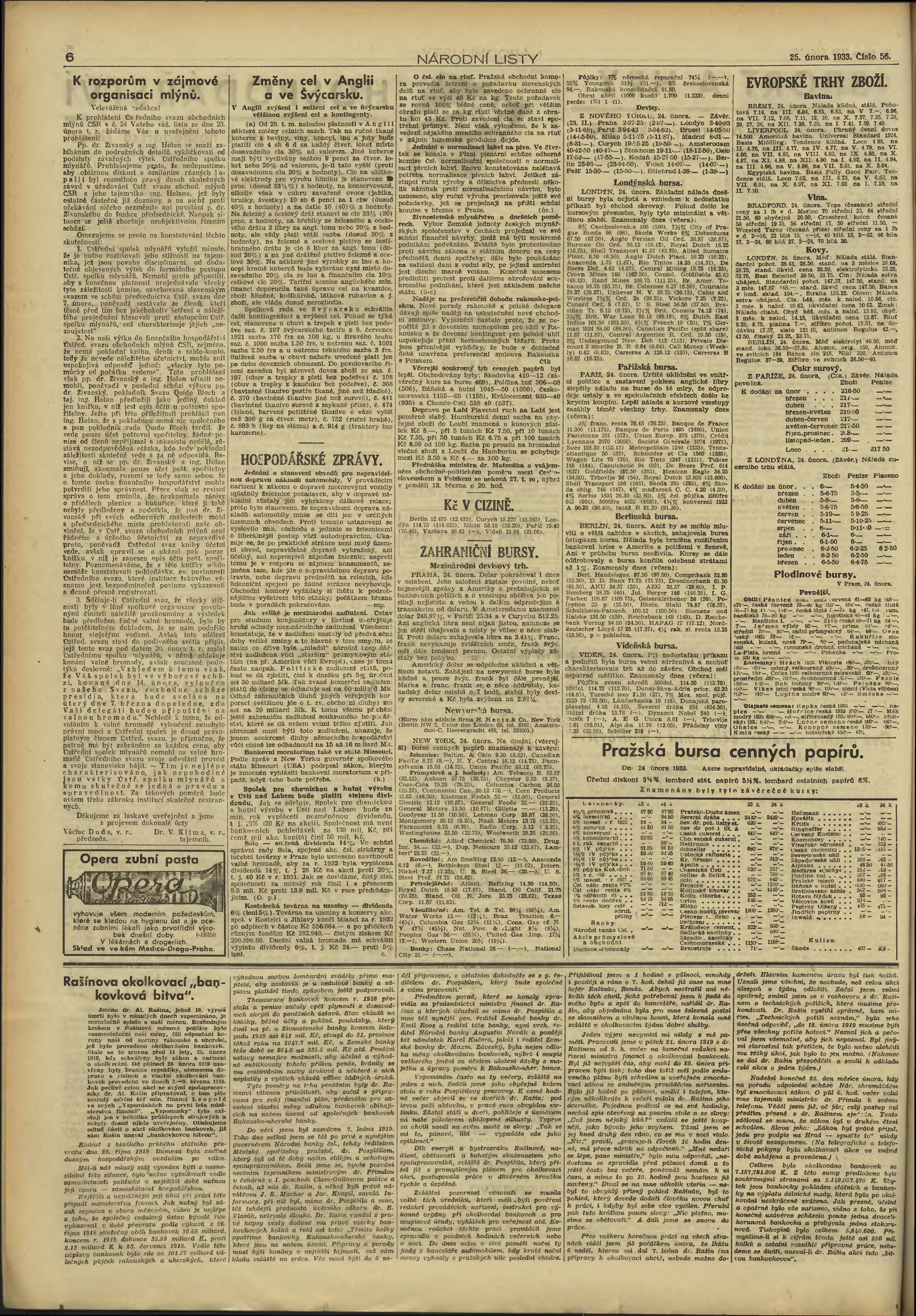 * Datum vydání výtisku: 25.2.1933 Číslo výtisku: 56