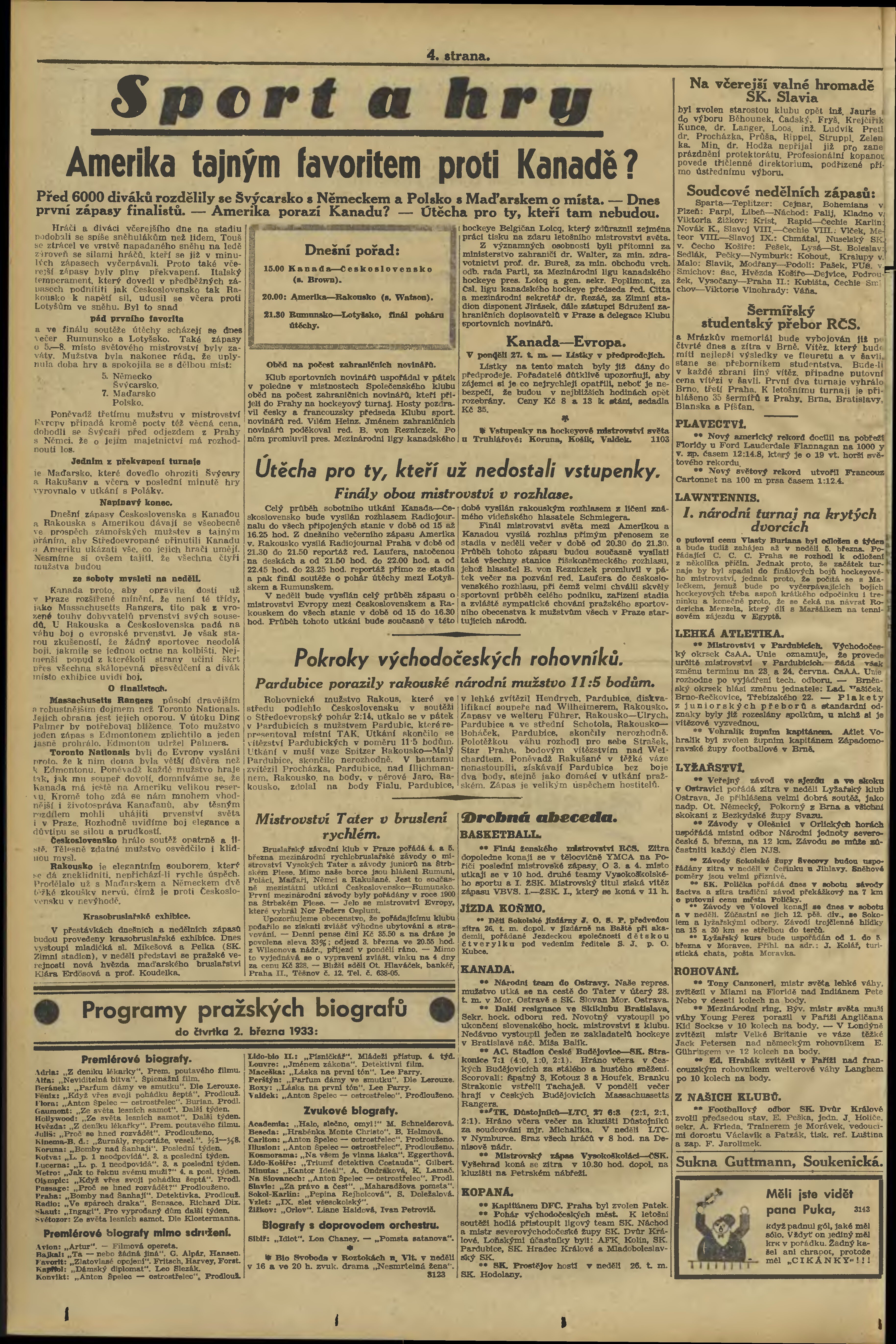 * Datum vydání výtisku: 25.2.1933 Číslo výtisku: 56 Poznámky k výtisku: večerní vydání;