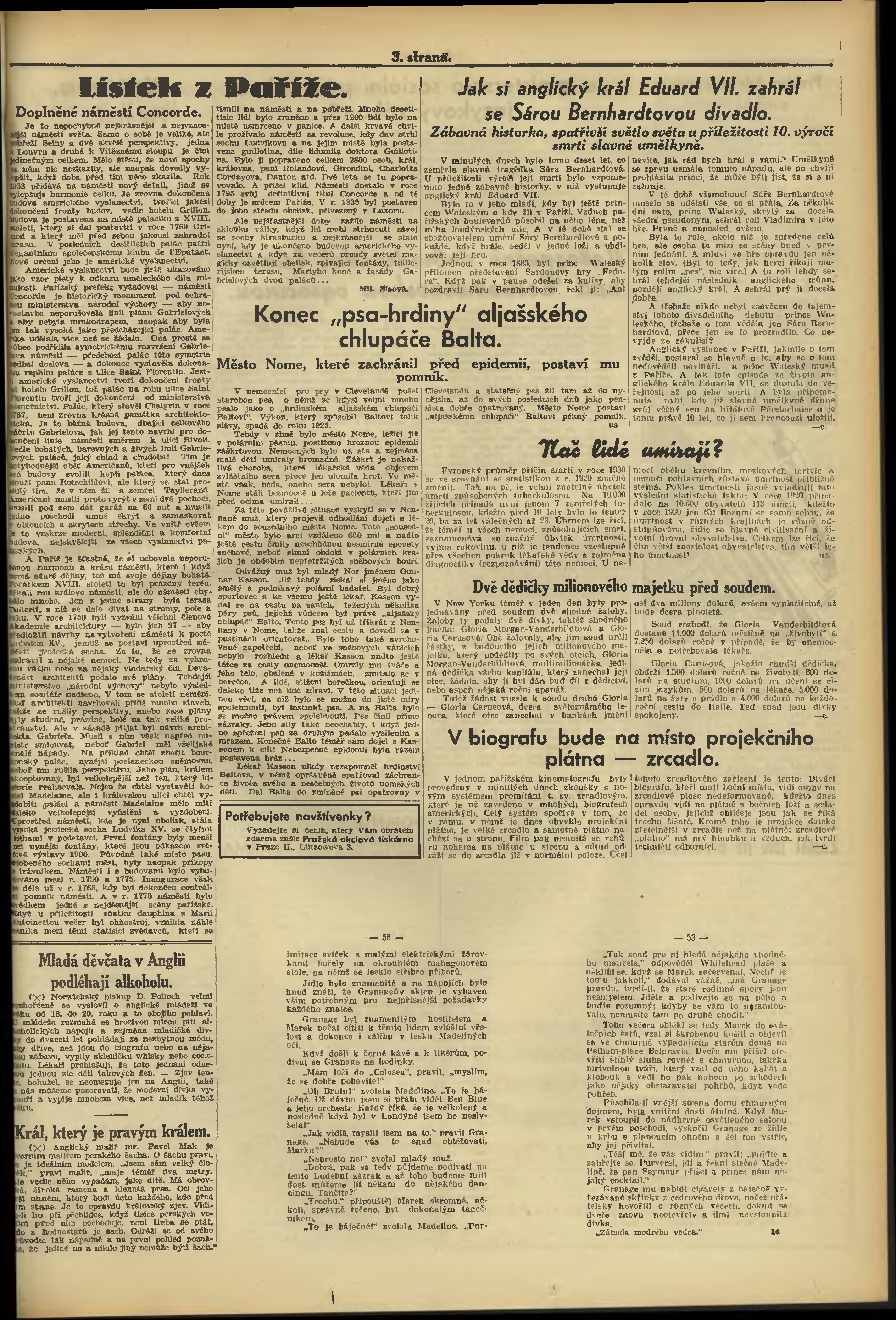 * Datum vydání výtisku: 4.4.1933 Číslo výtisku: 94 Poznámky k výtisku: večerní vydání;