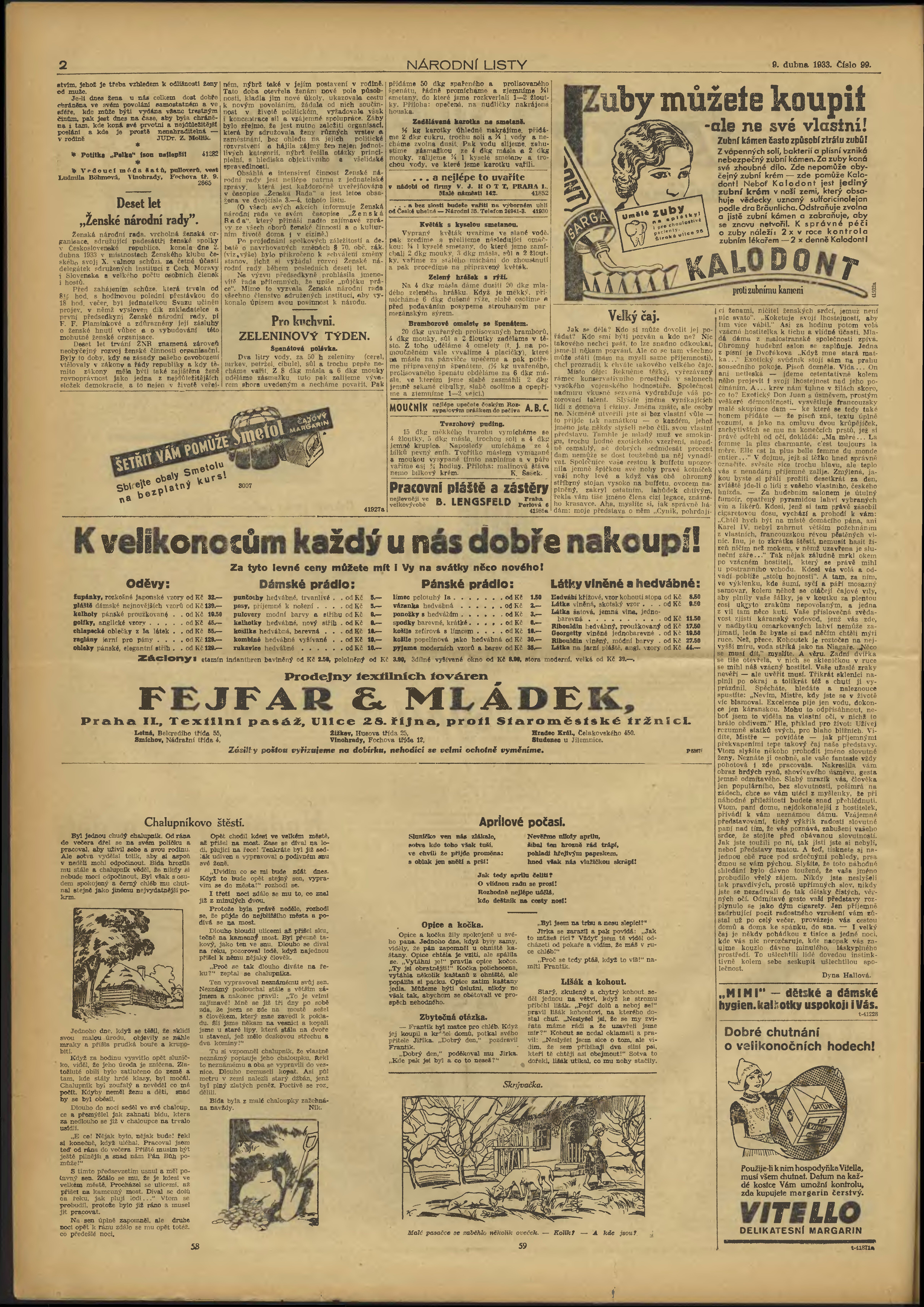 * Datum vydání výtisku: 9.4.1933 Číslo výtisku: 99 Typ výtisku: příloha
