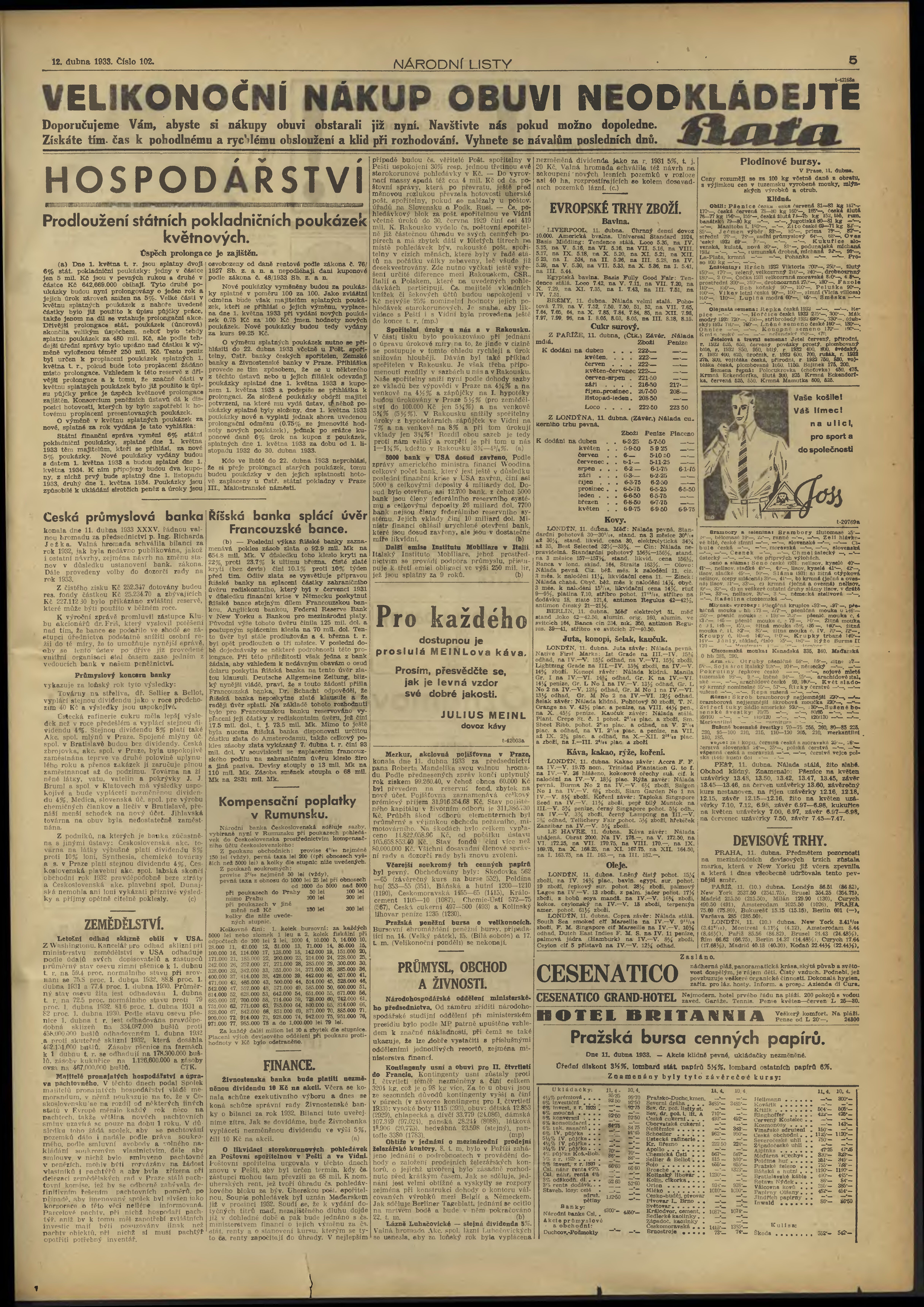 * Datum vydání výtisku: 12.4.1933 Číslo výtisku: 102