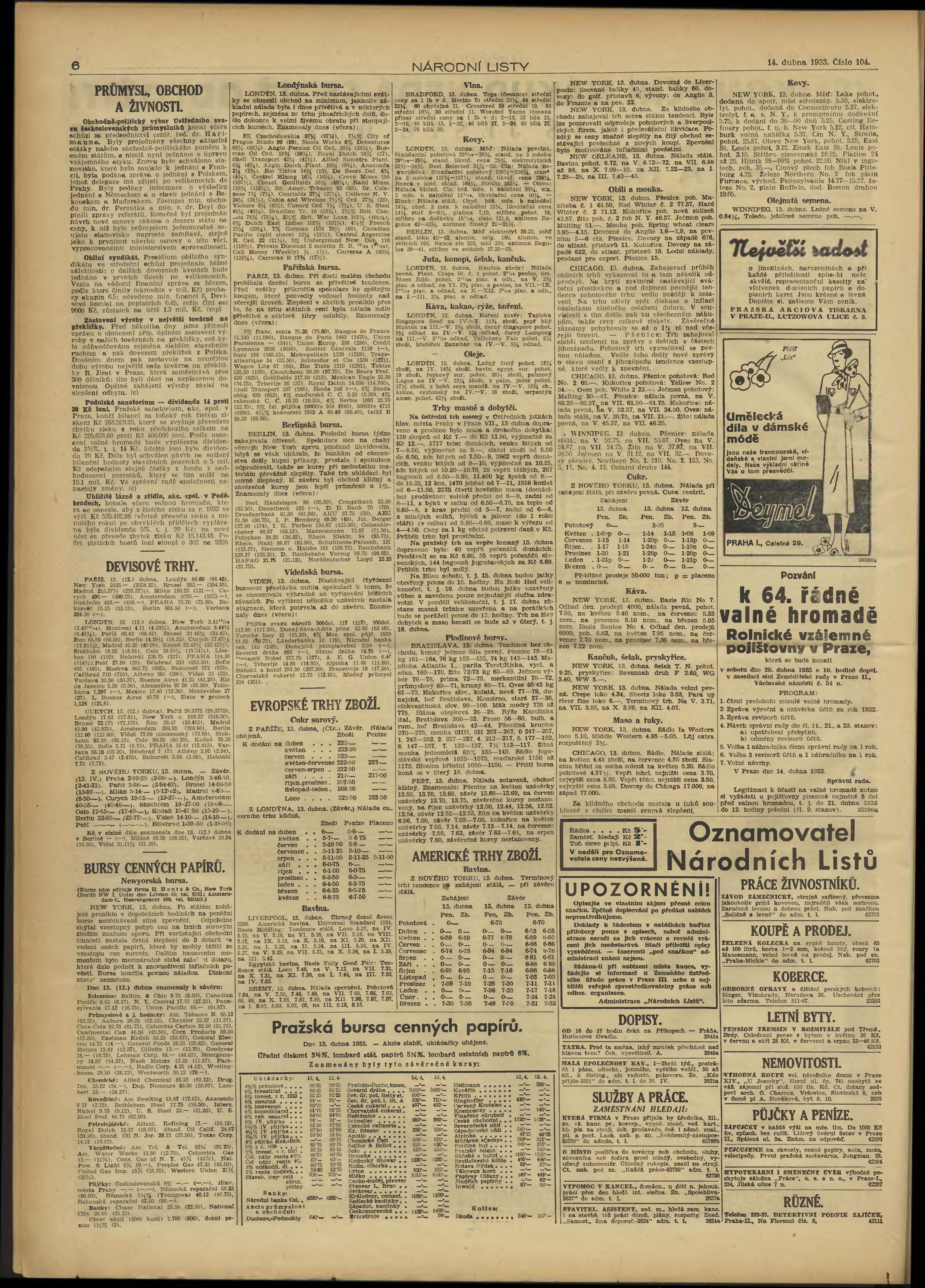 * Datum vydání výtisku: 14.4.1933 Číslo výtisku: 104