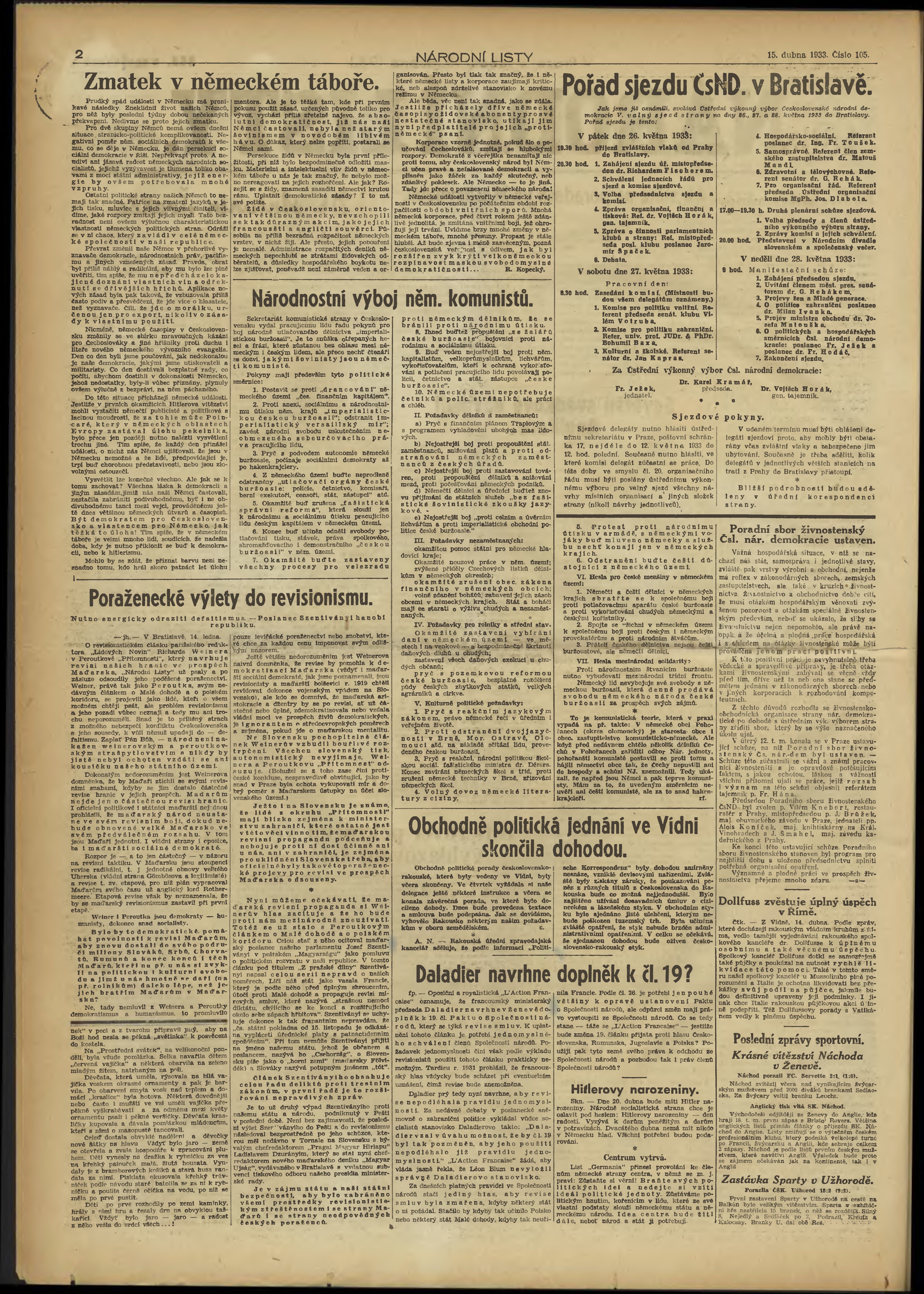 * Datum vydání výtisku: 15.4.1933 Číslo výtisku: 105