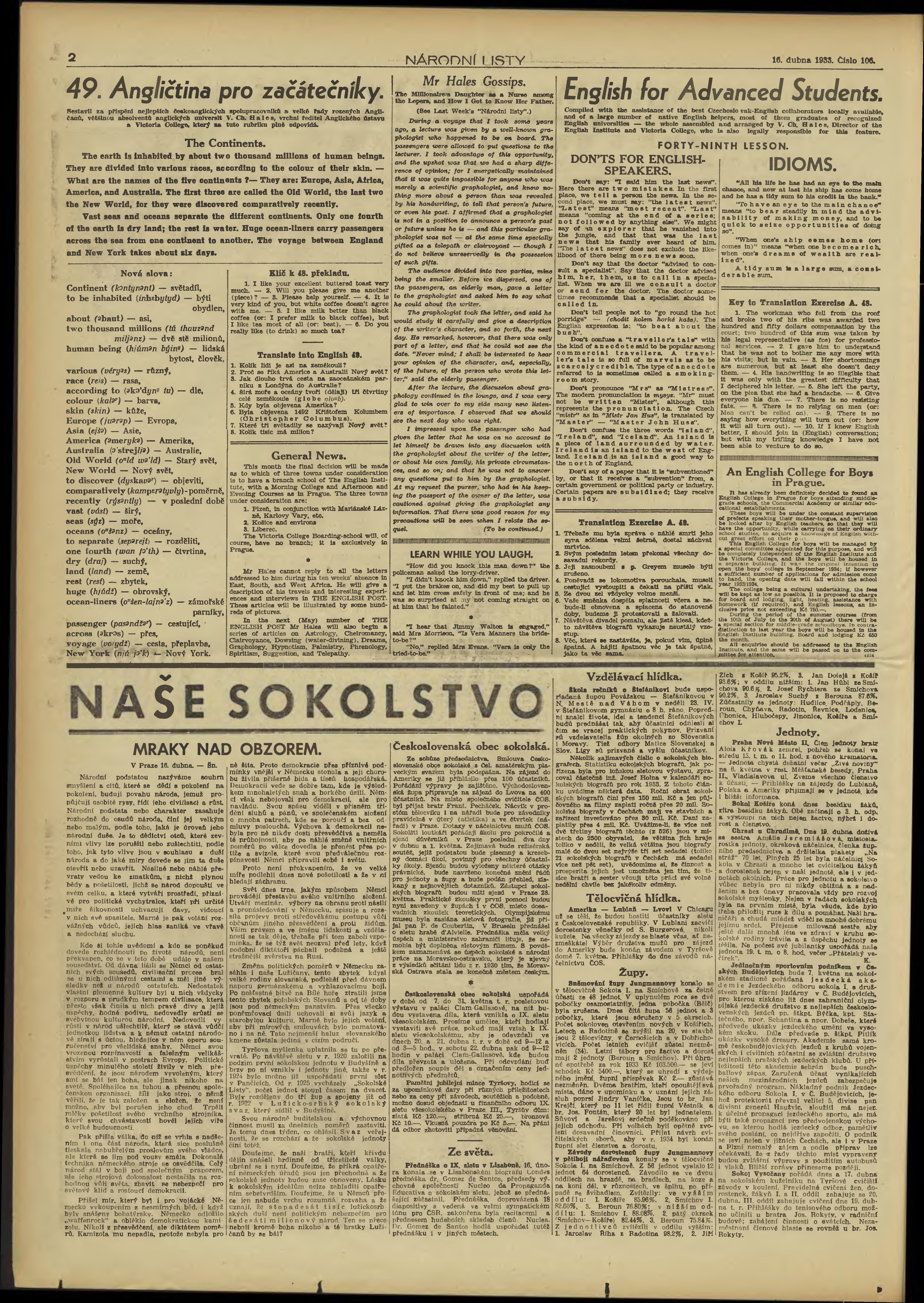 * Datum vydání výtisku: 16.4.1933 Číslo výtisku: 106 Typ výtisku: příloha