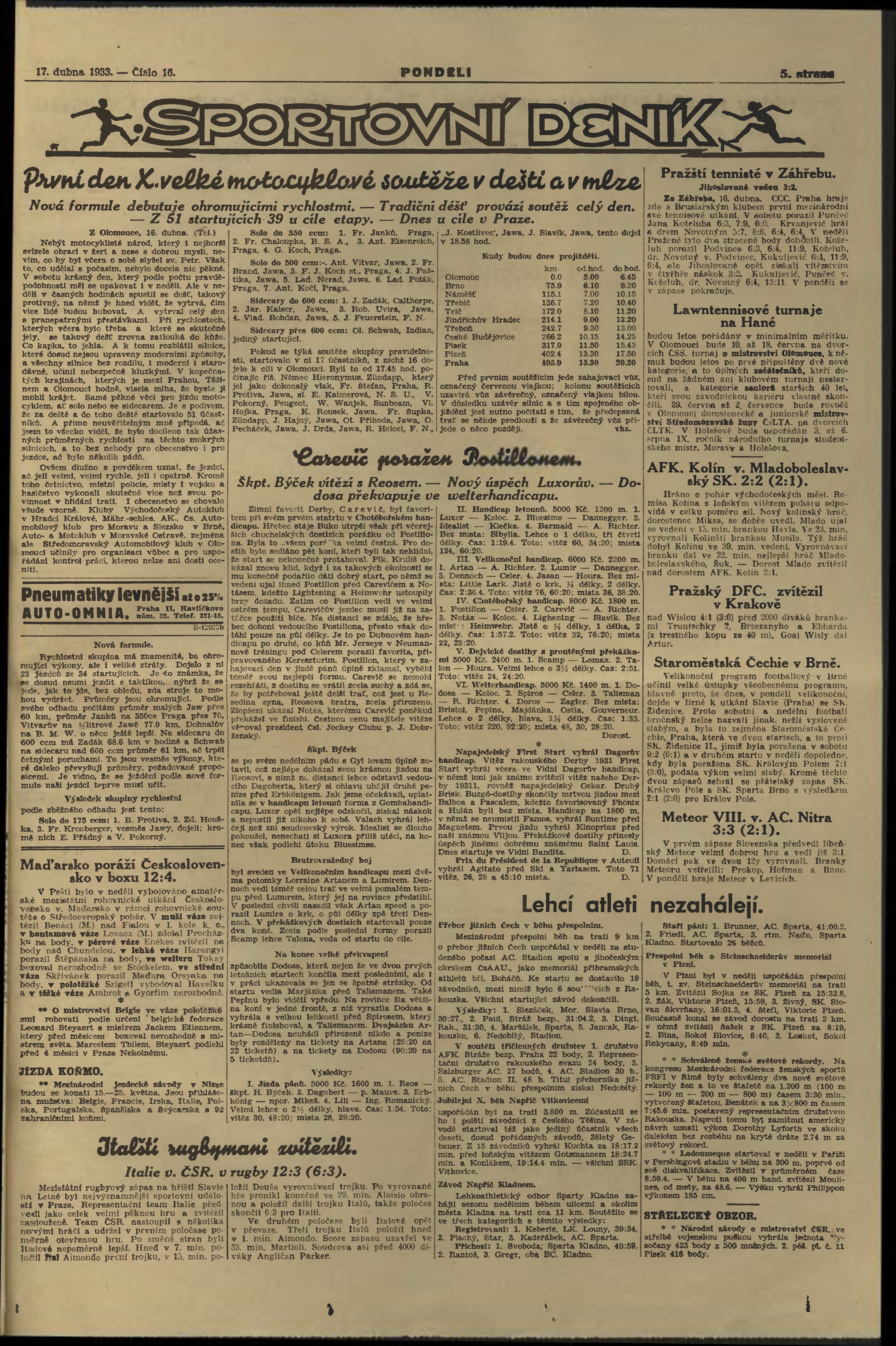 * Datum vydání výtisku: 17.4.1933 Číslo výtisku: 16