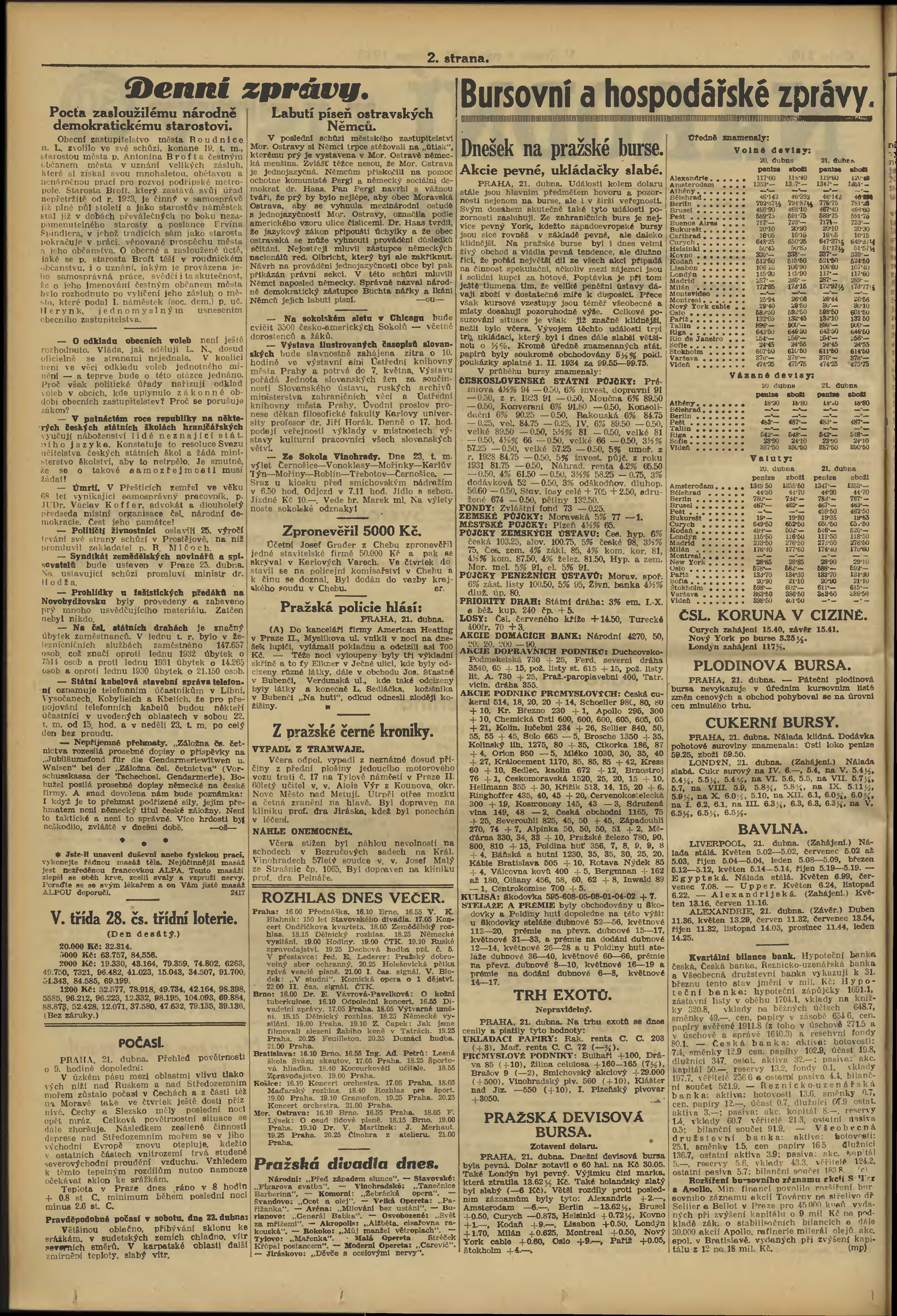 * Datum vydání výtisku: 21.4.1933 Číslo výtisku: 110 Poznámky k výtisku: večerní vydání;