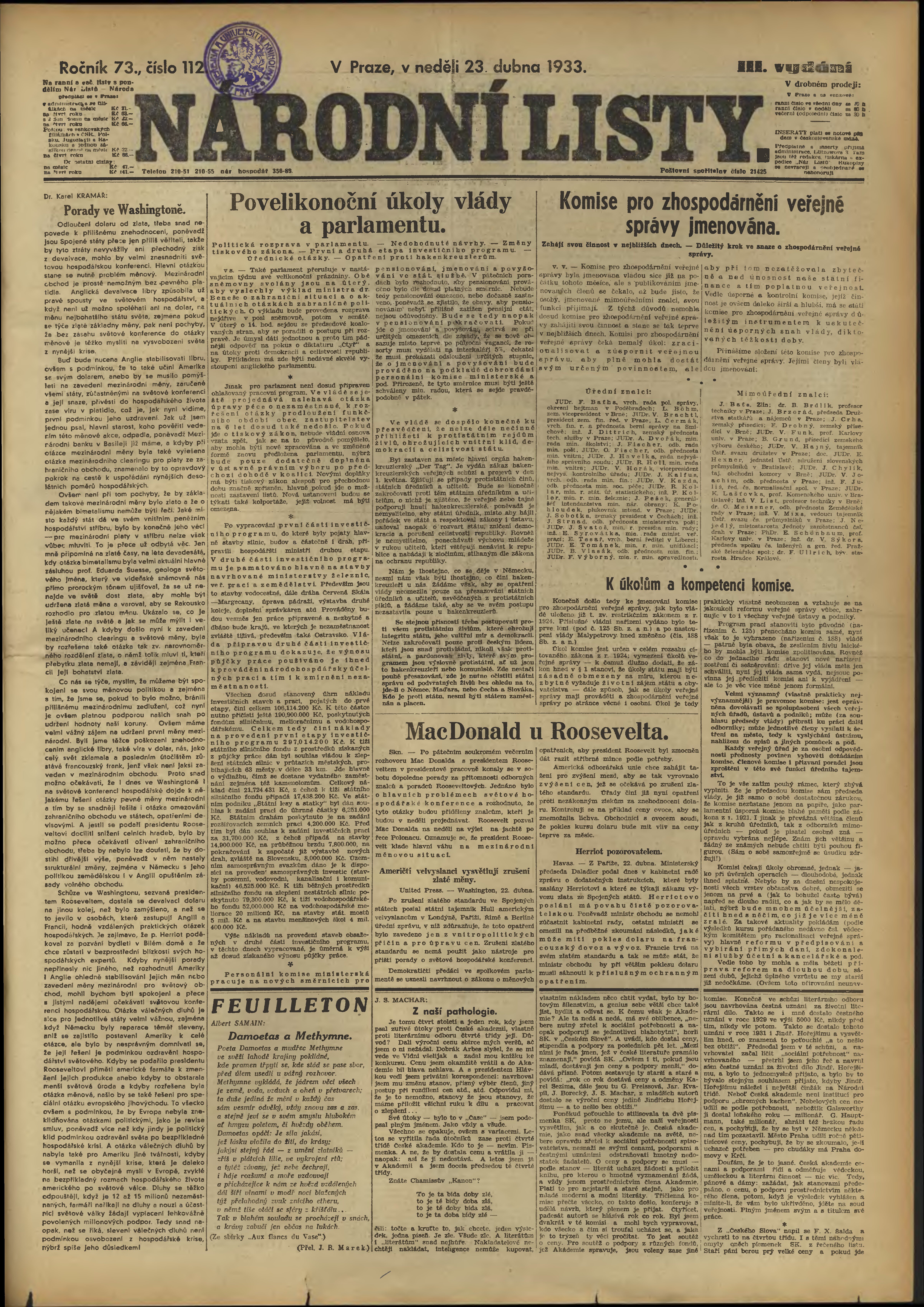 * Datum vydání výtisku: 23.4.1933 Číslo výtisku: 112