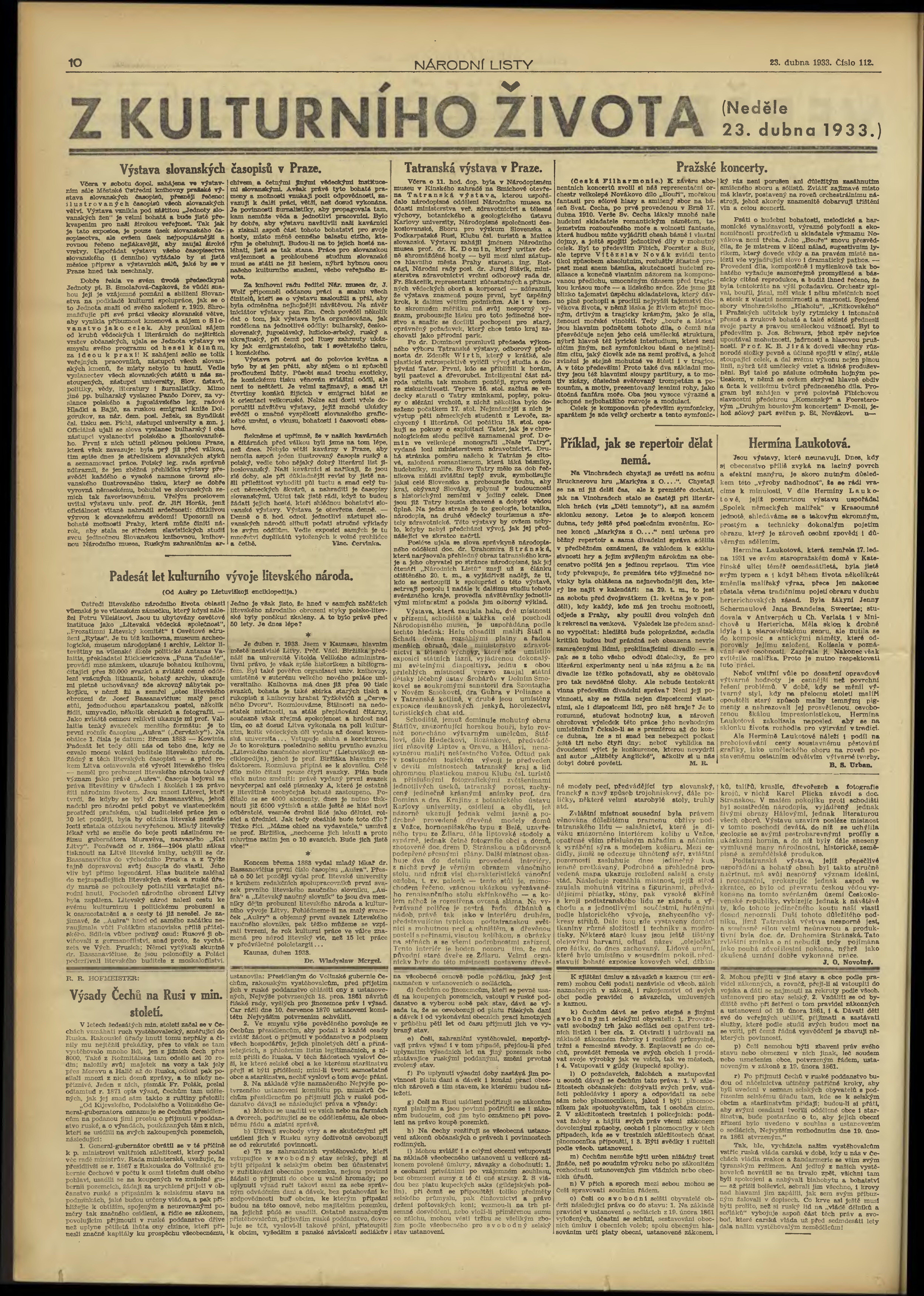 * Datum vydání výtisku: 23.4.1933 Číslo výtisku: 112