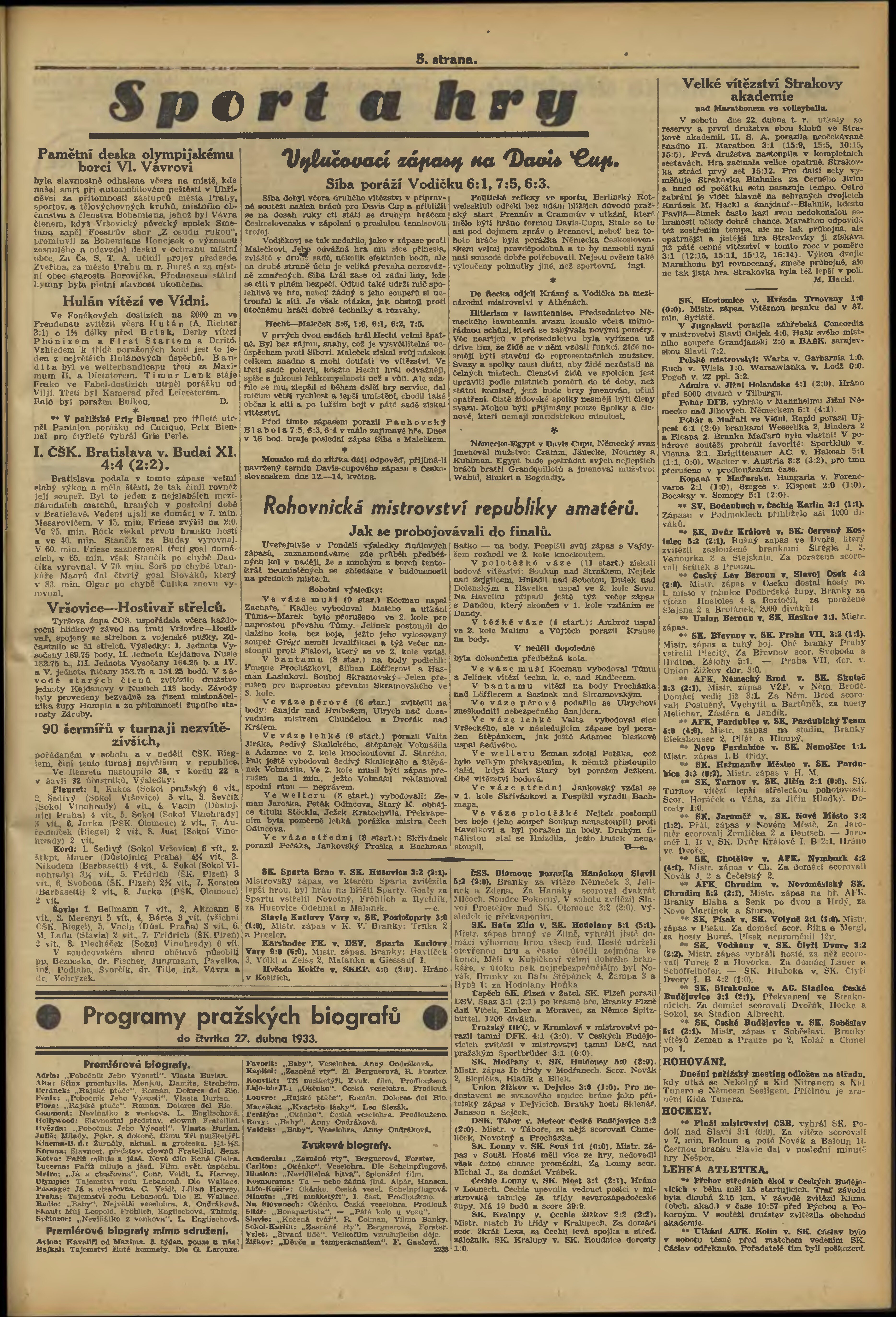 * Datum vydání výtisku: 24.4.1933 Číslo výtisku: 113 Poznámky k výtisku: večerní vydání;