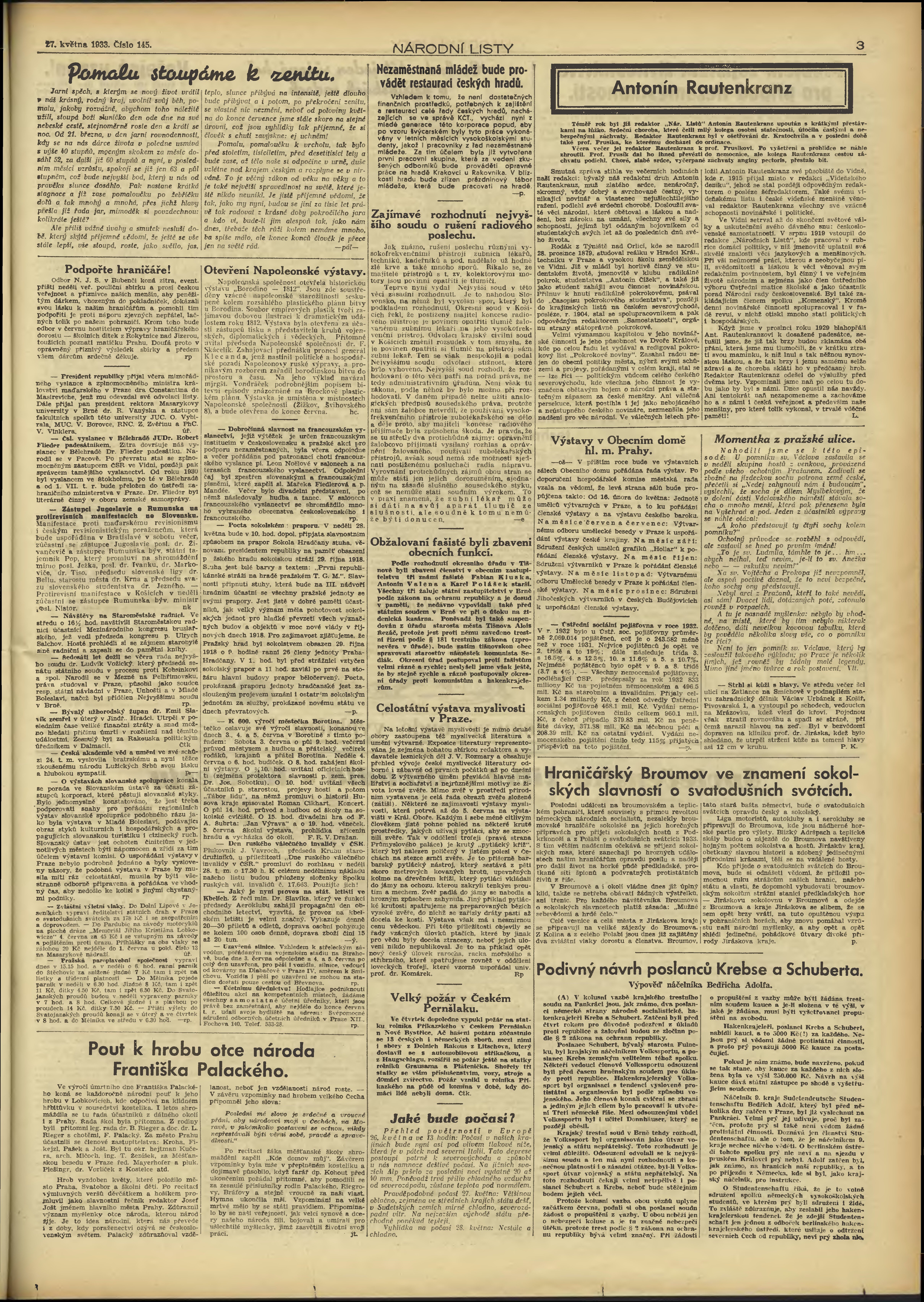 * Datum vydání výtisku: 27.5.1933 Číslo výtisku: 145