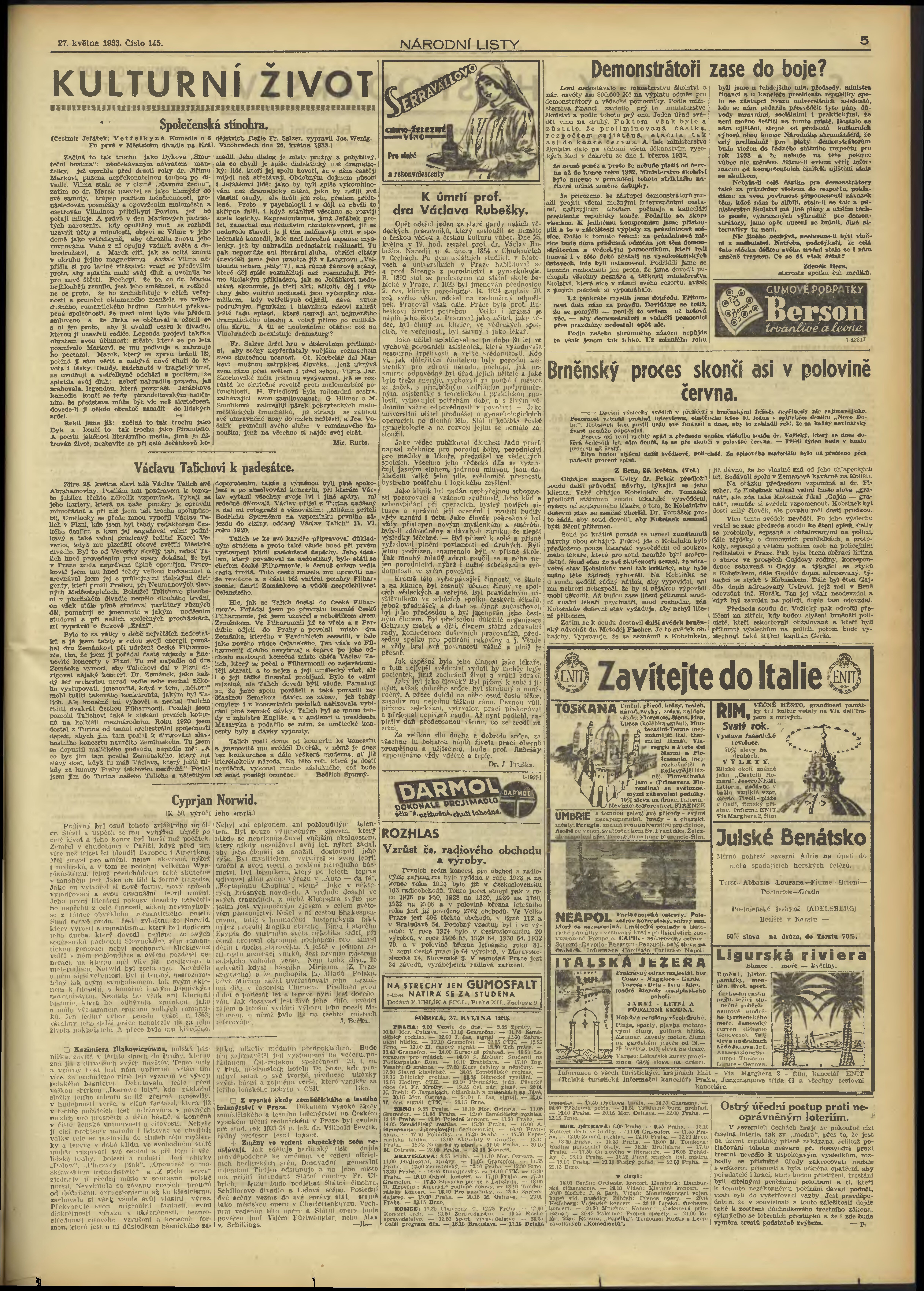 * Datum vydání výtisku: 27.5.1933 Číslo výtisku: 145