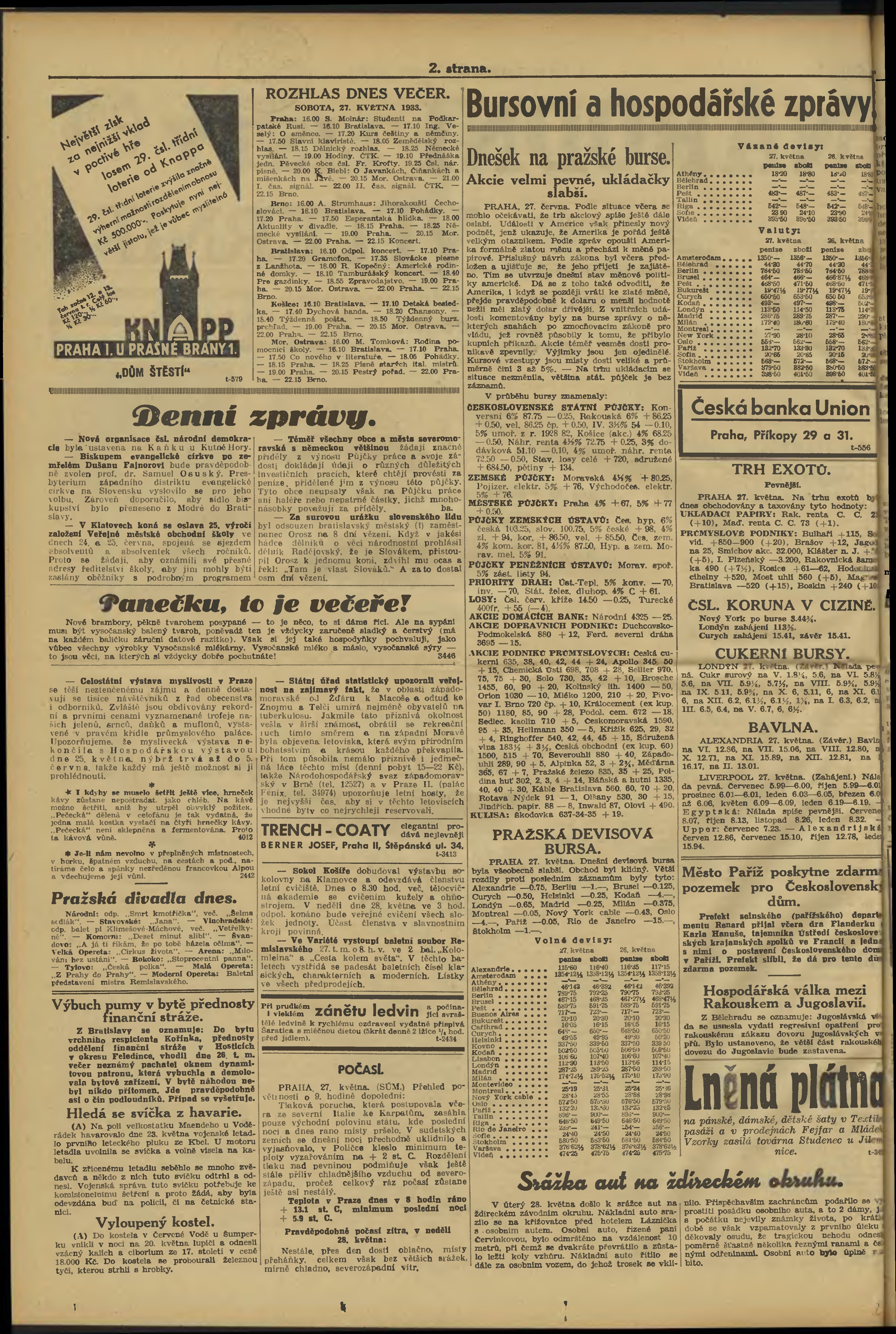 * Datum vydání výtisku: 27.5.1933 Číslo výtisku: 145 Poznámky k výtisku: večerní vydání;