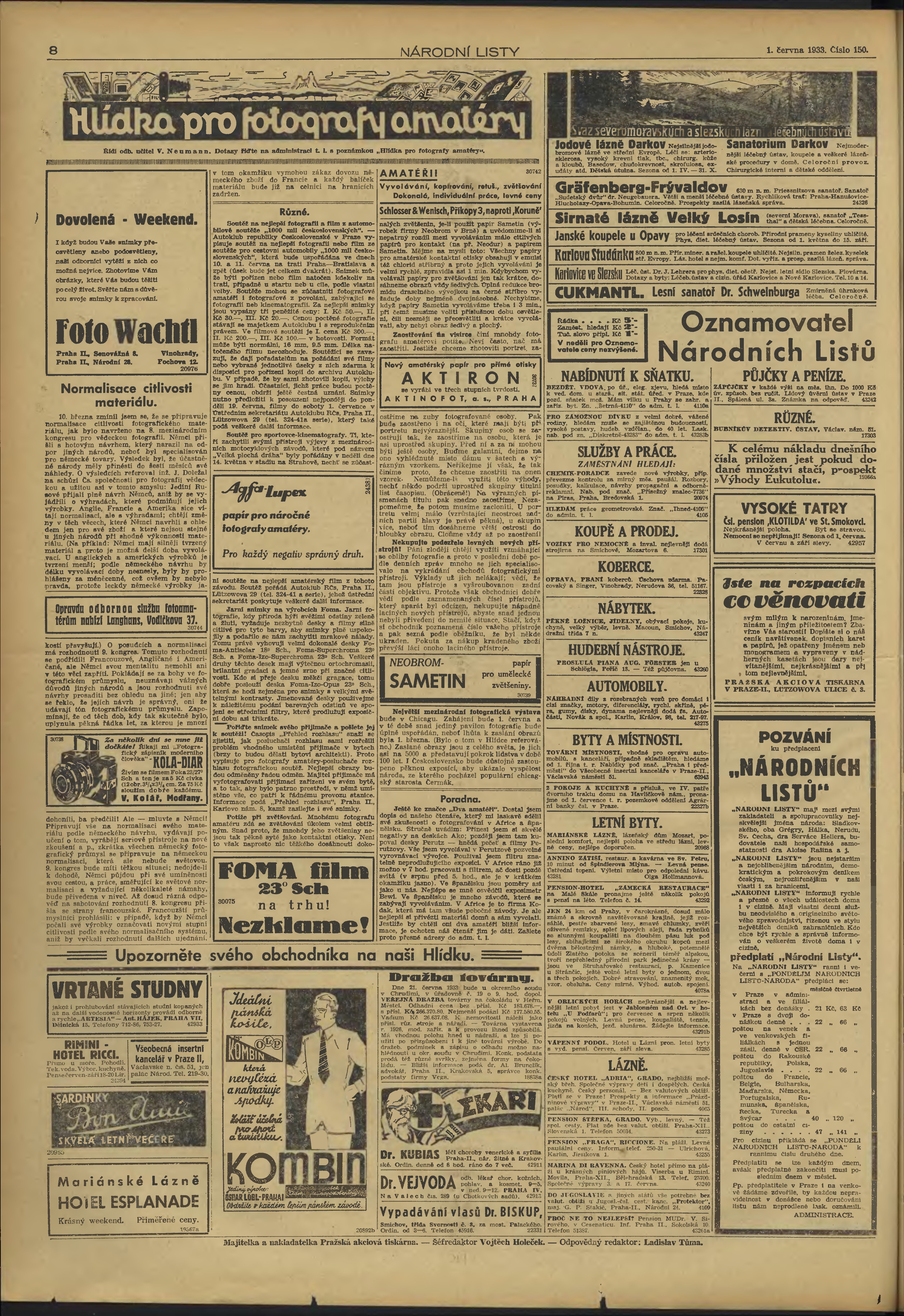 * Datum vydání výtisku: 1.6.1933 Číslo výtisku: 150