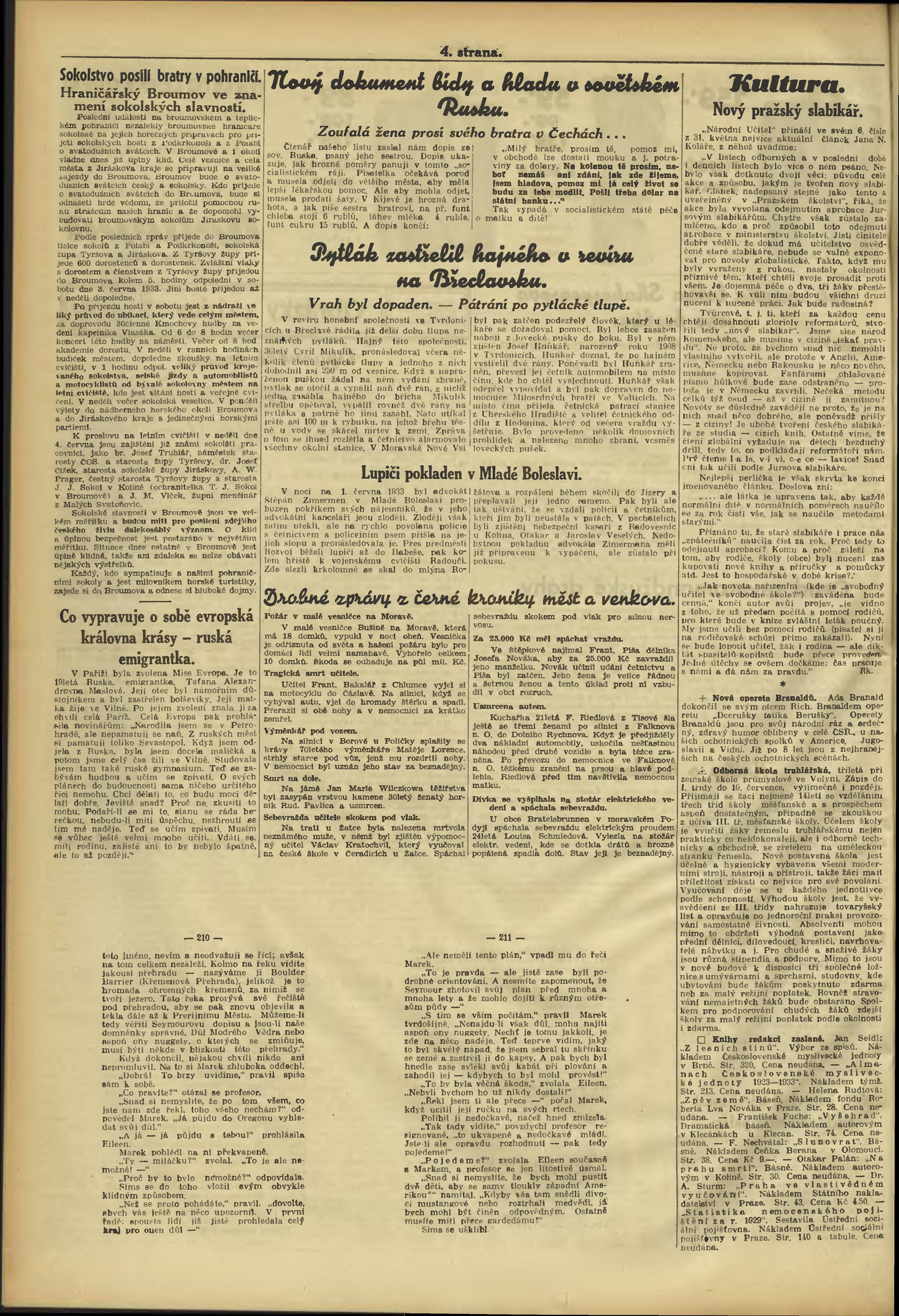 * Datum vydání výtisku: 2.6.1933 Číslo výtisku: 151 Poznámky k výtisku: večerní vydání;