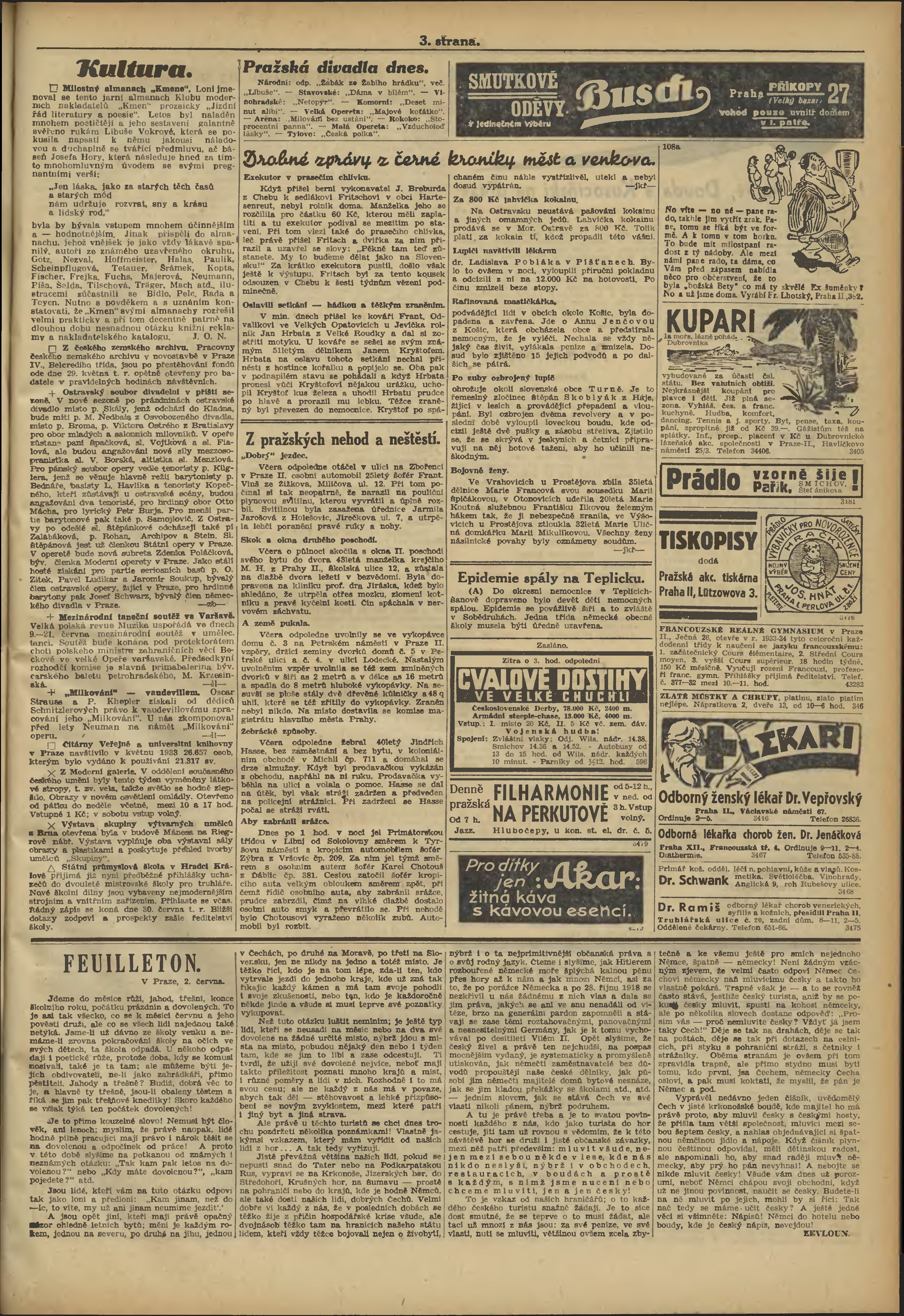 * Datum vydání výtisku: 3.6.1933 Číslo výtisku: 152 Poznámky k výtisku: večerní vydání;