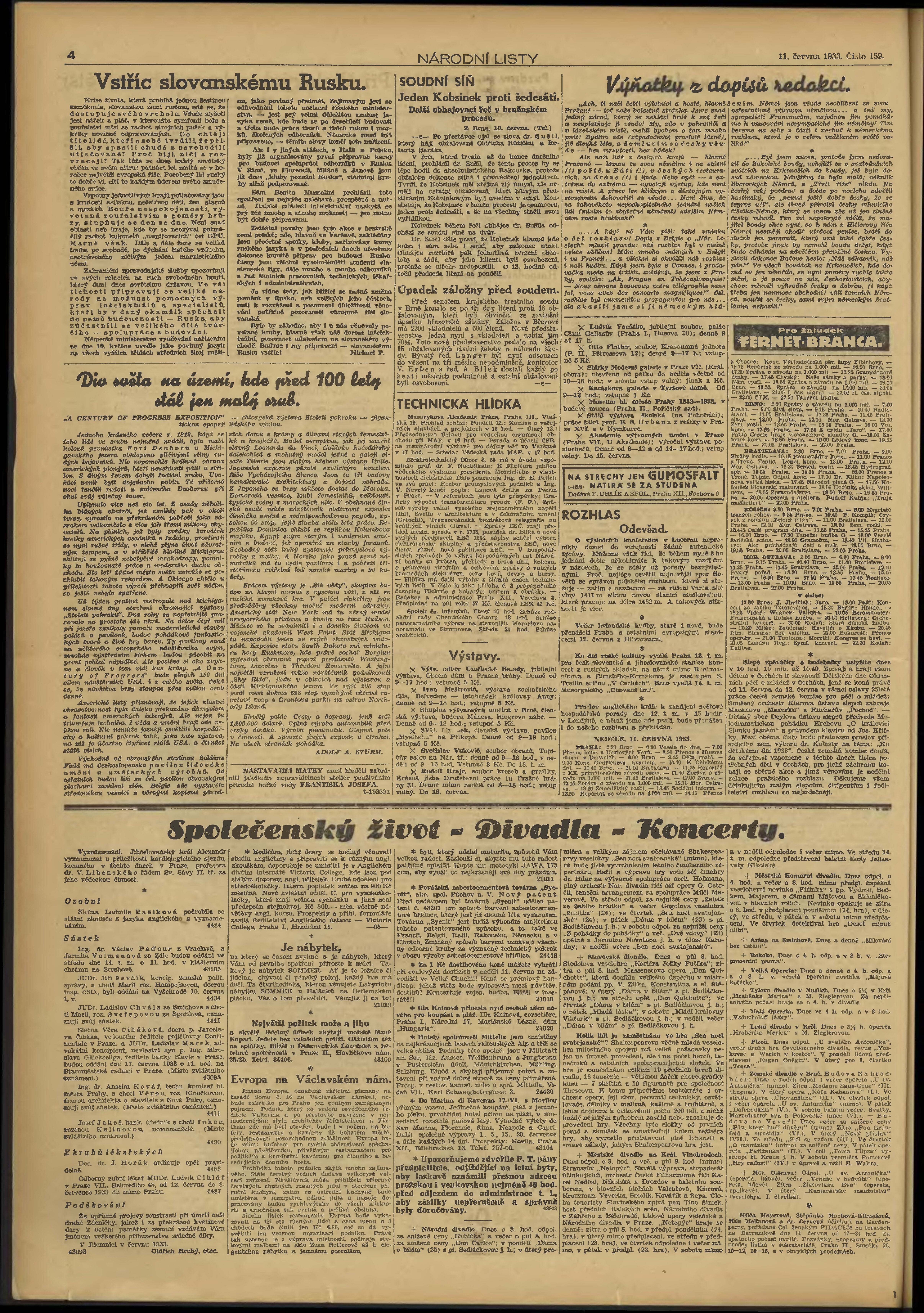 * Datum vydání výtisku: 11.6.1933 Číslo výtisku: 159