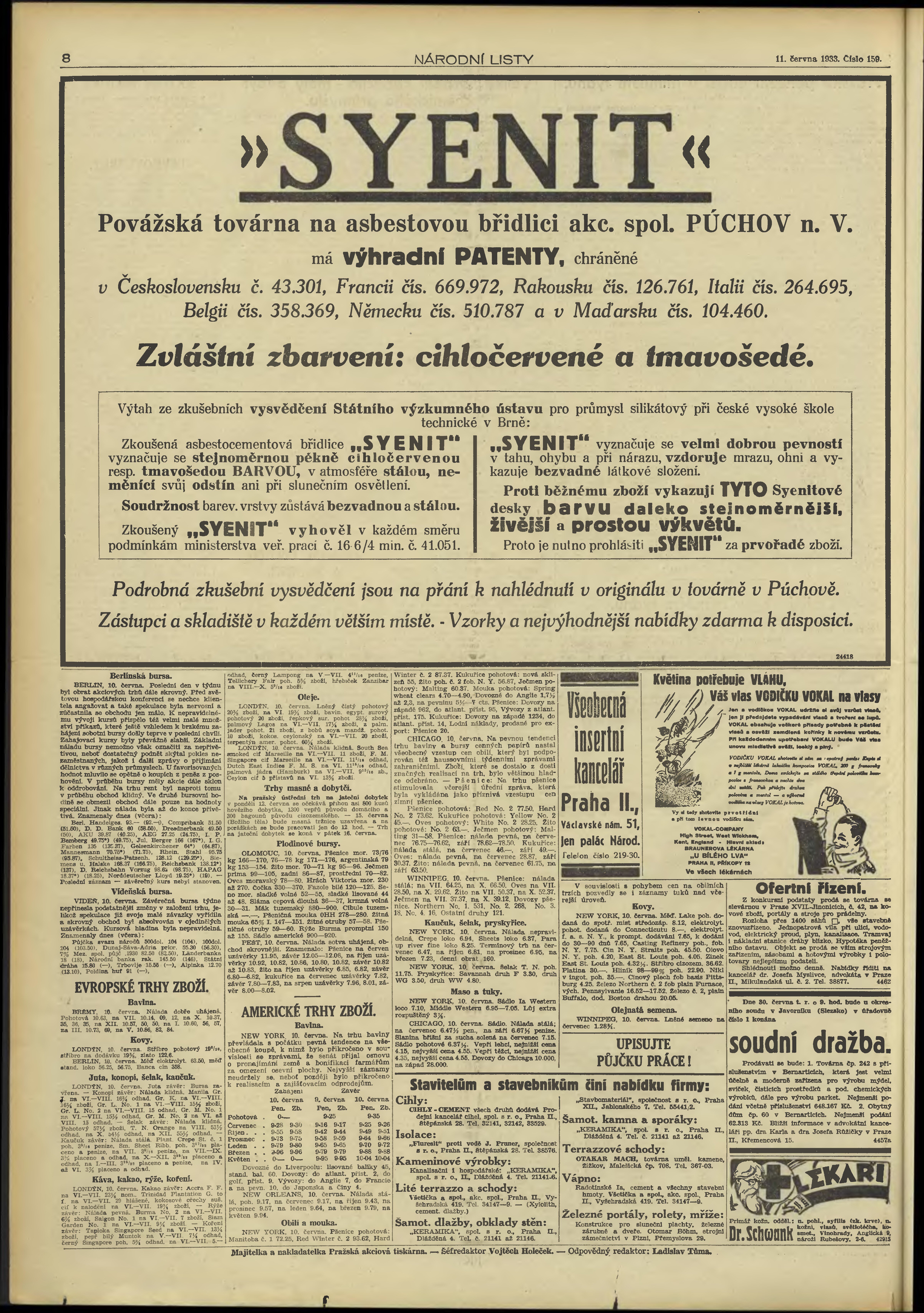 * Datum vydání výtisku: 11.6.1933 Číslo výtisku: 159