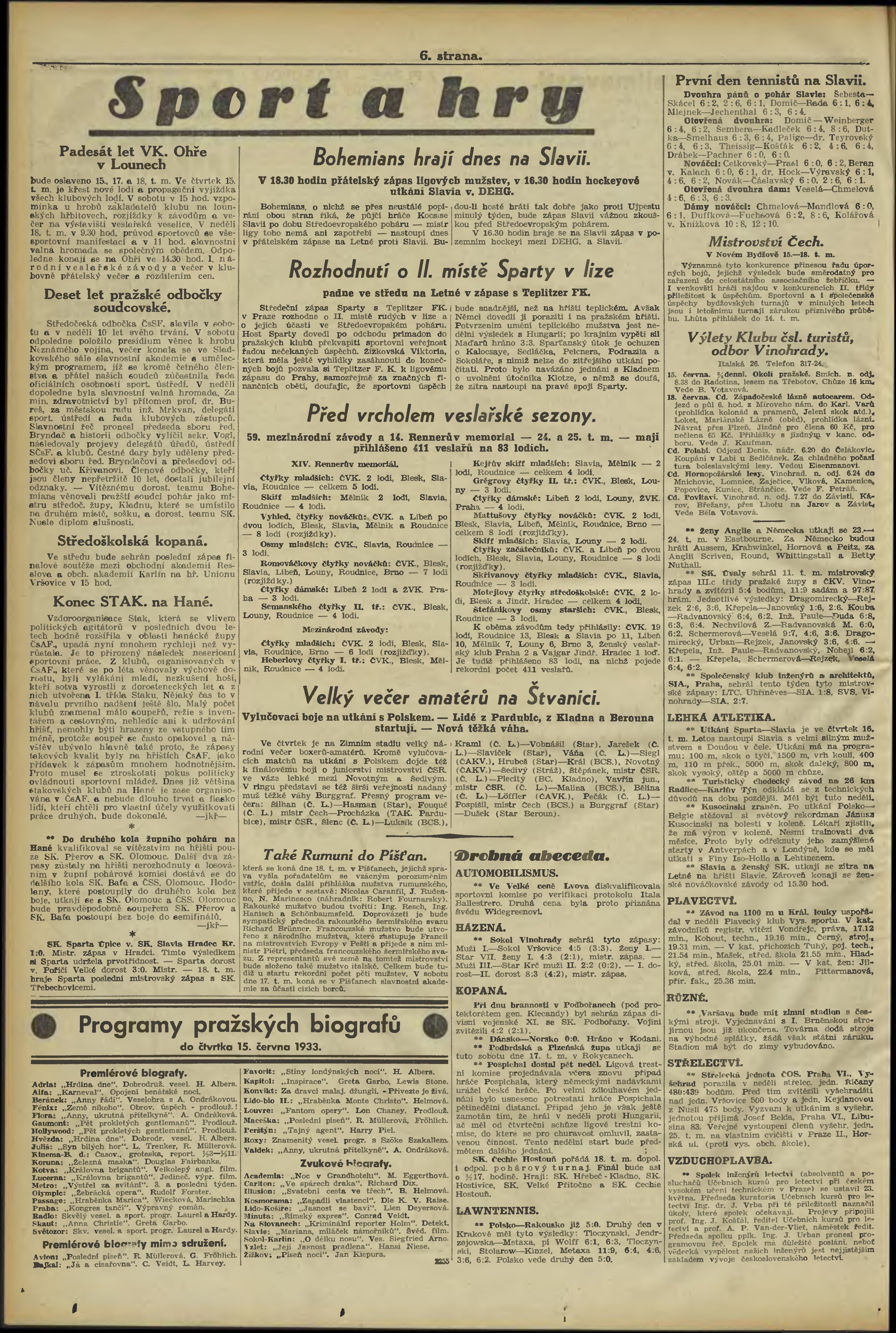 * Datum vydání výtisku: 13.6.1933 Číslo výtisku: 161 Poznámky k výtisku: večerní vydání;