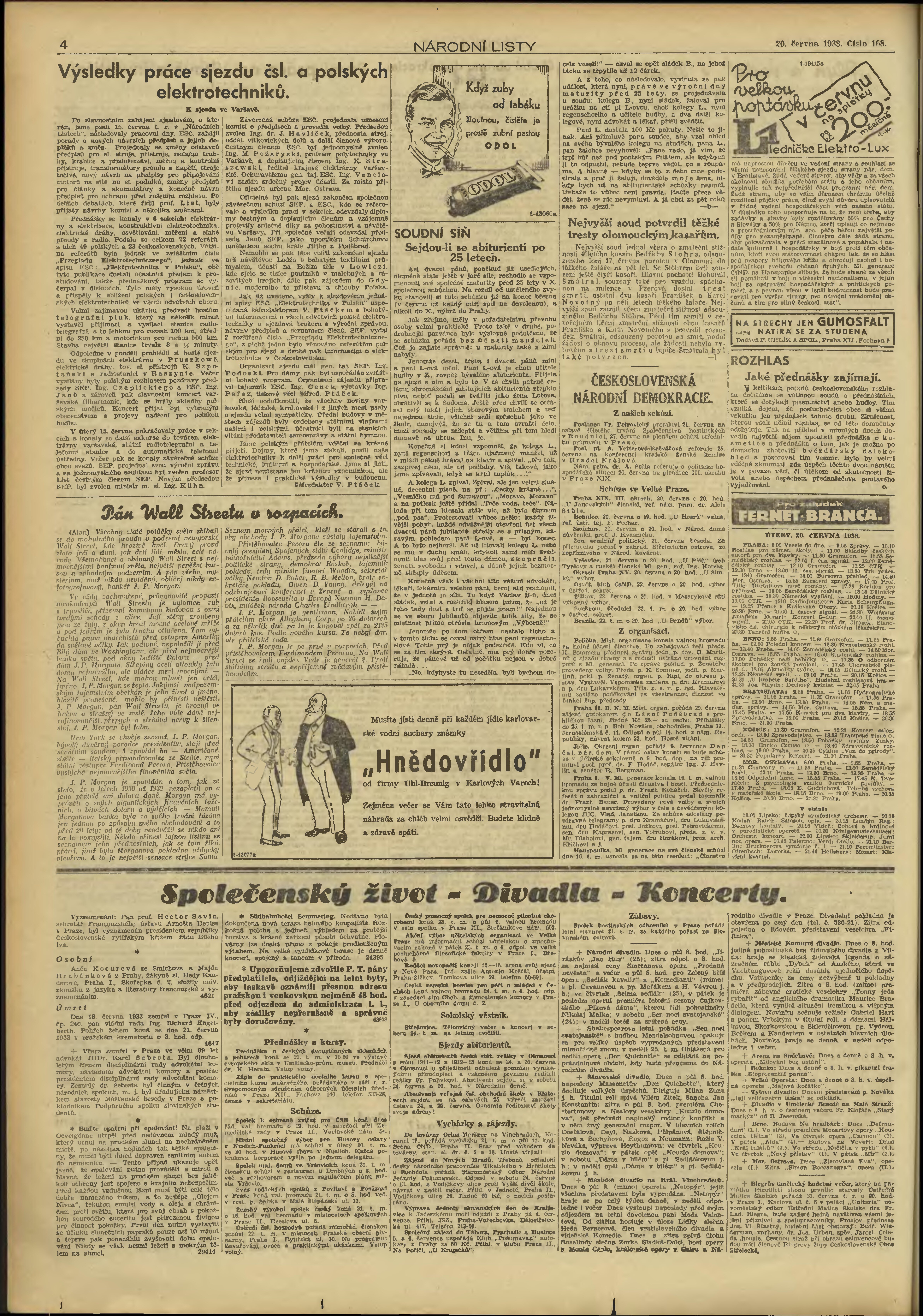 * Datum vydání výtisku: 20.6.1933 Číslo výtisku: 168