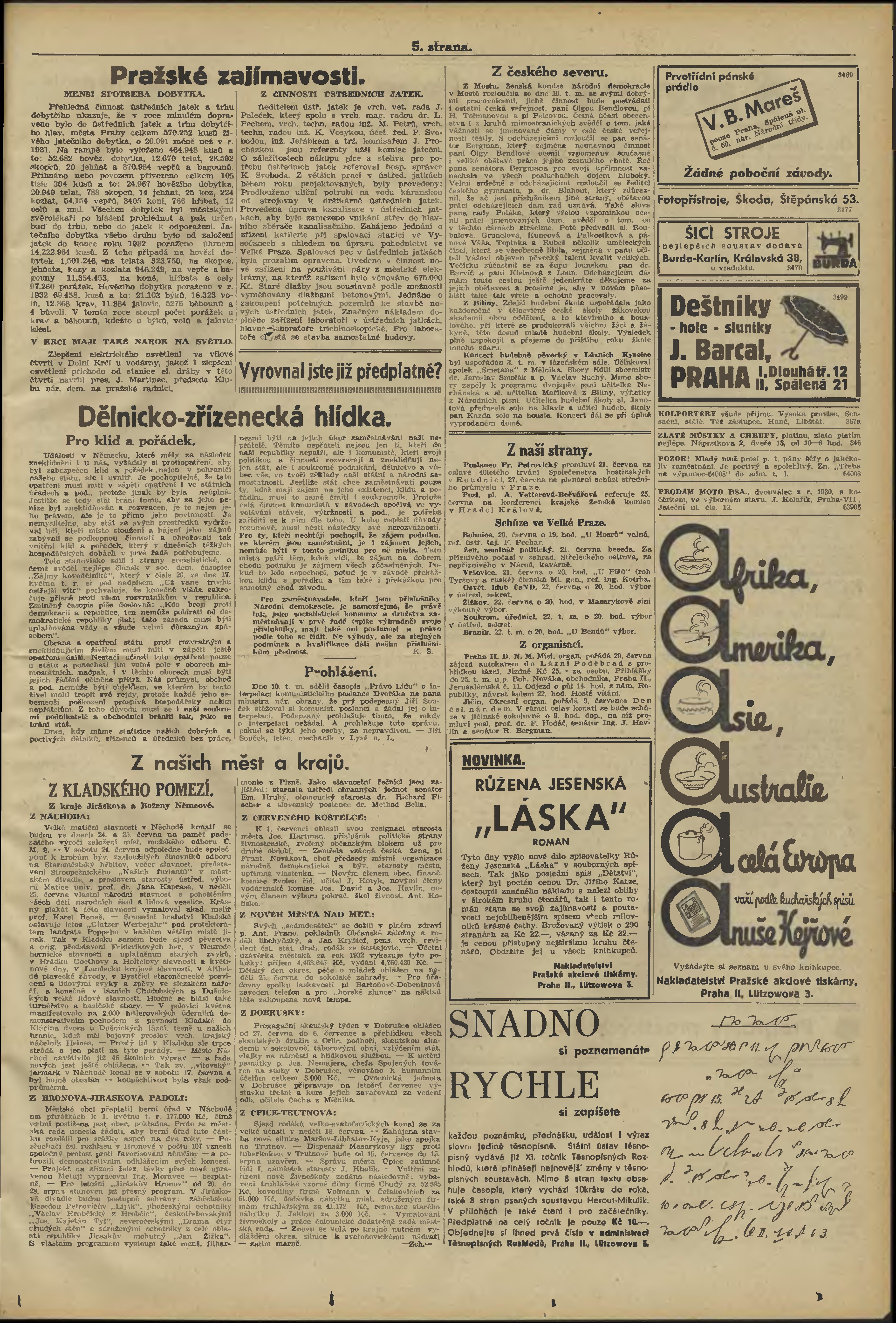 * Datum vydání výtisku: 20.6.1933 Číslo výtisku: 168 Poznámky k výtisku: večerní vydání;