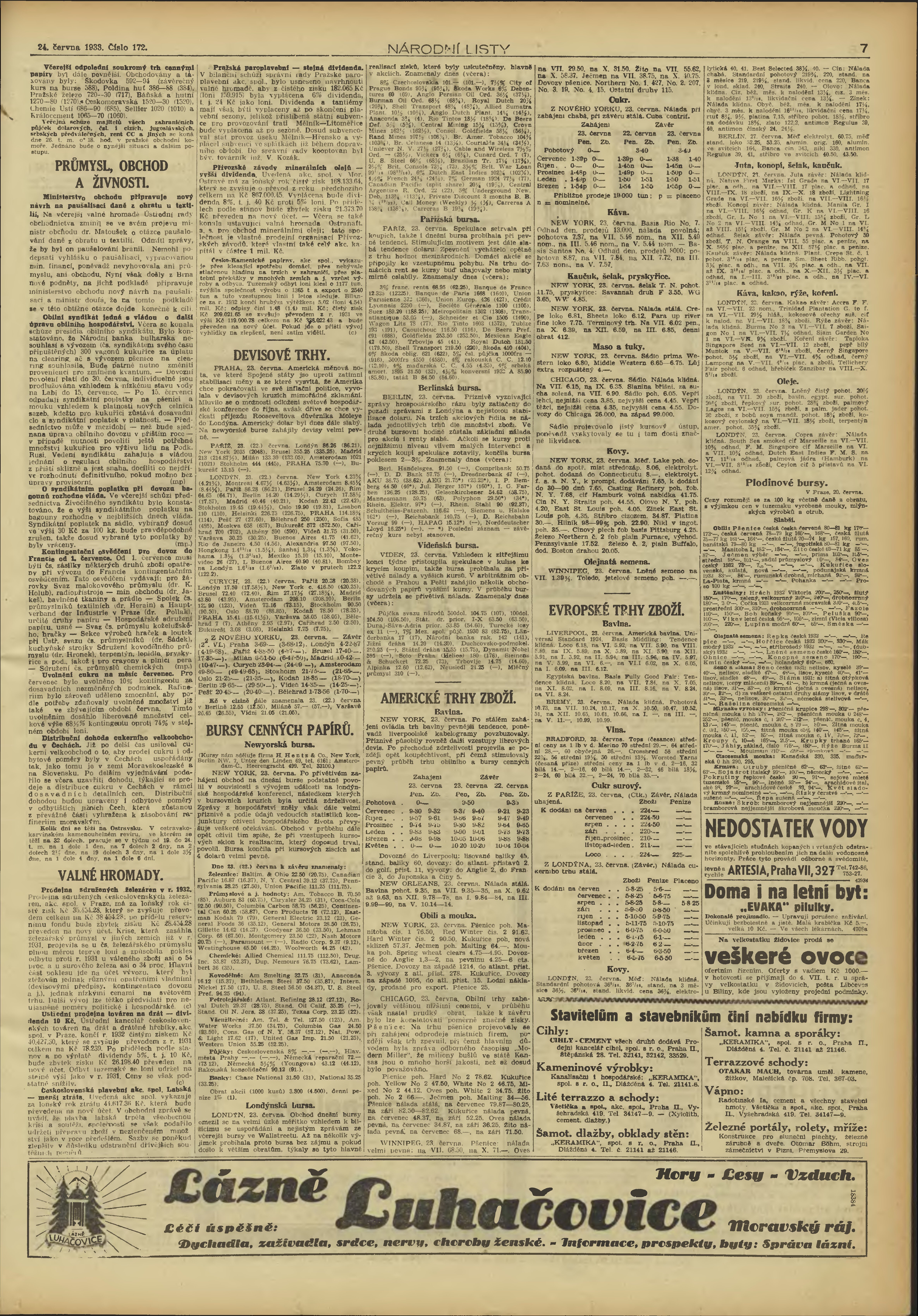 * Datum vydání výtisku: 24.6.1933 Číslo výtisku: 172