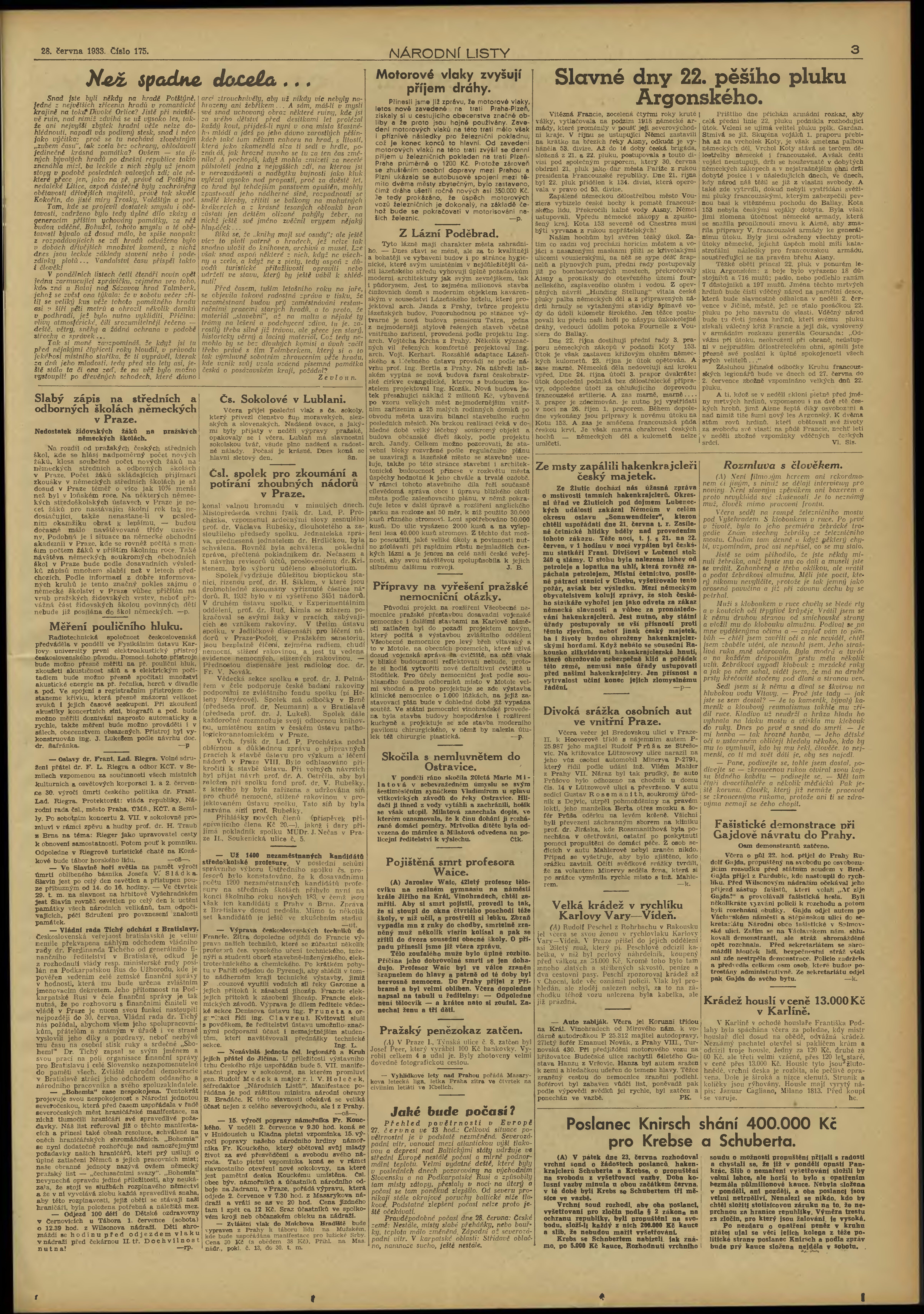 * Datum vydání výtisku: 28.6.1933 Číslo výtisku: 175