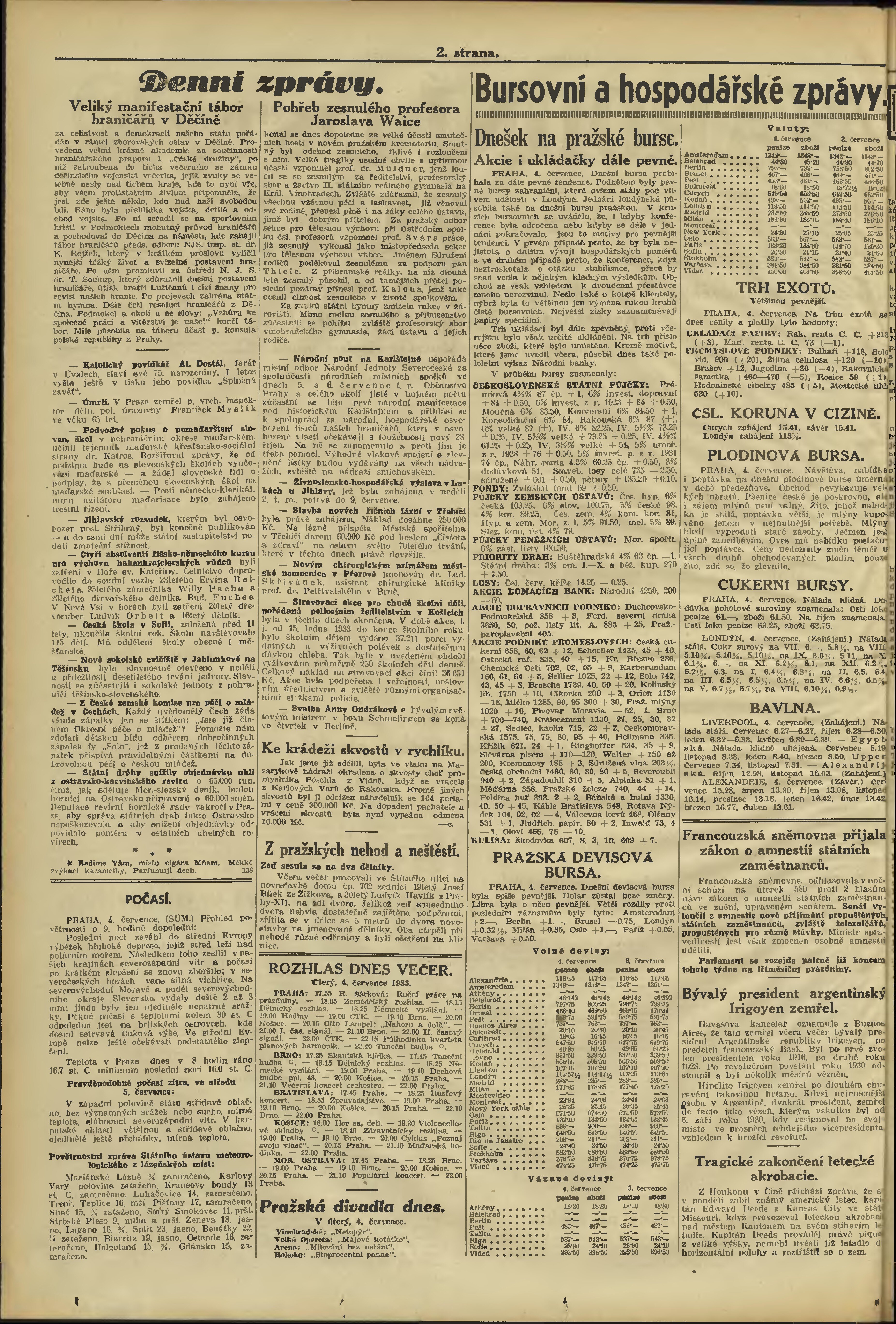 * Datum vydání výtisku: 4.7.1933 Číslo výtisku: 181 Poznámky k výtisku: večerní vydání;