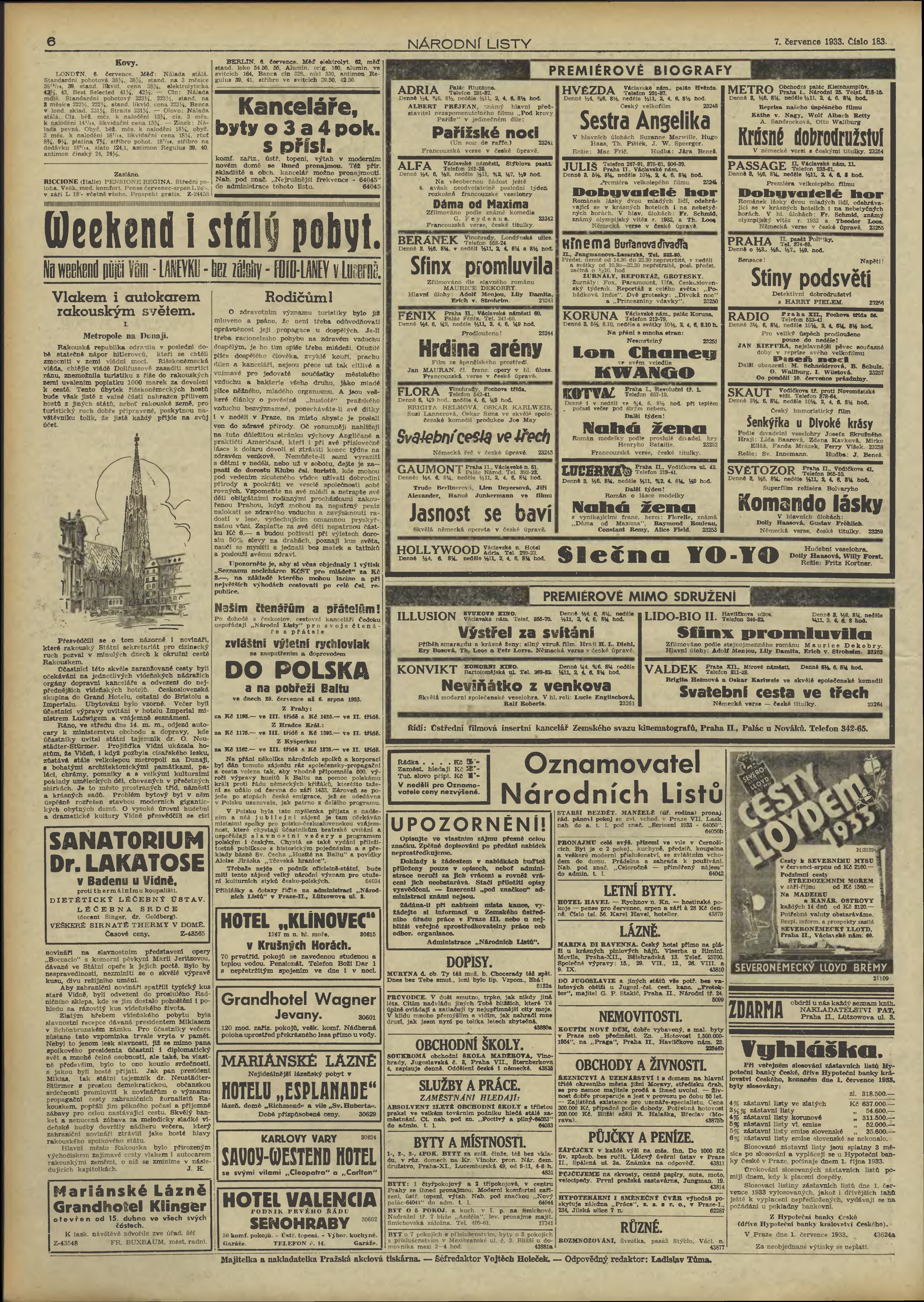 * Datum vydání výtisku: 7.7.1933 Číslo výtisku: 183