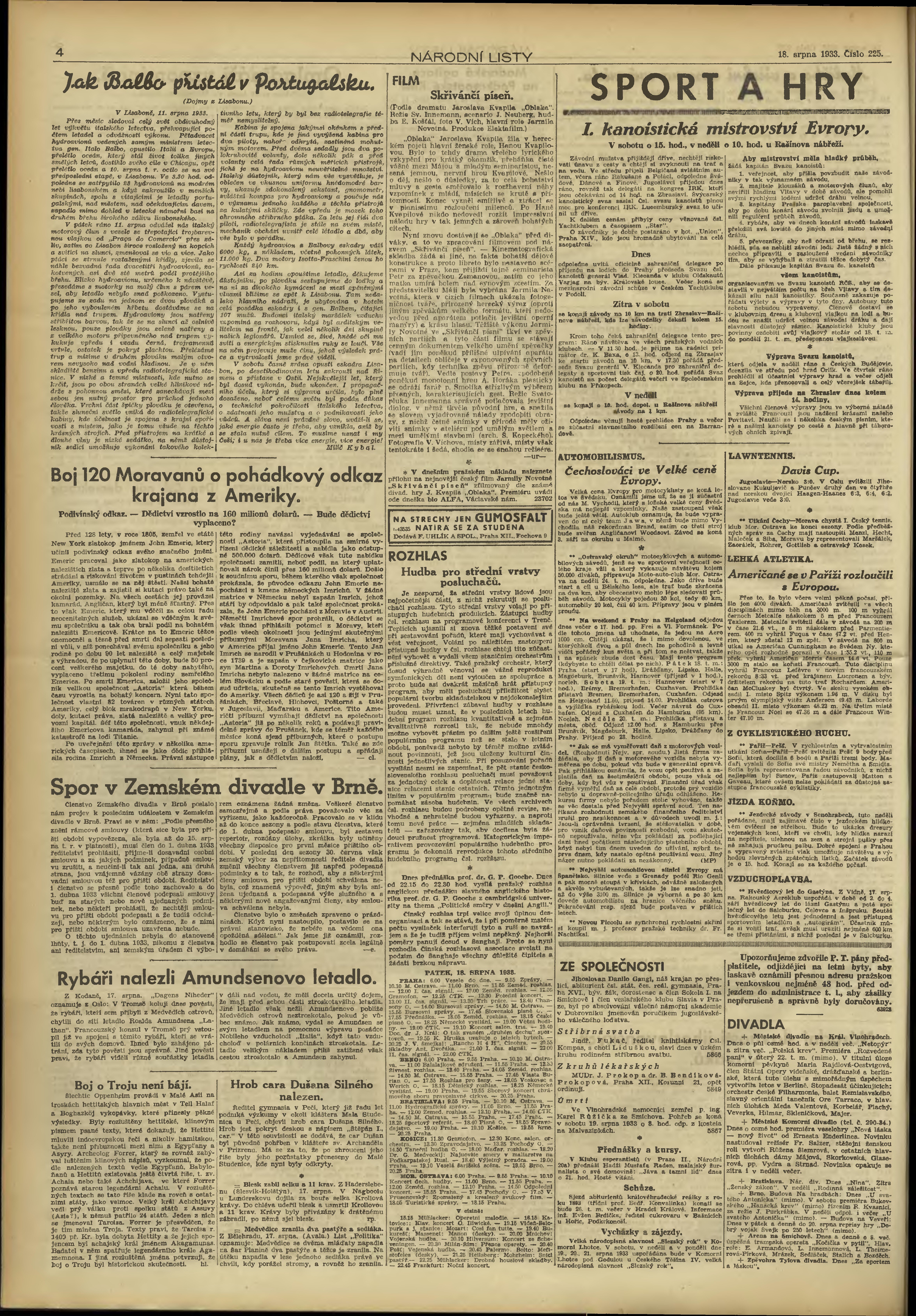 * Datum vydání výtisku: 18.8.1933 Číslo výtisku: 225