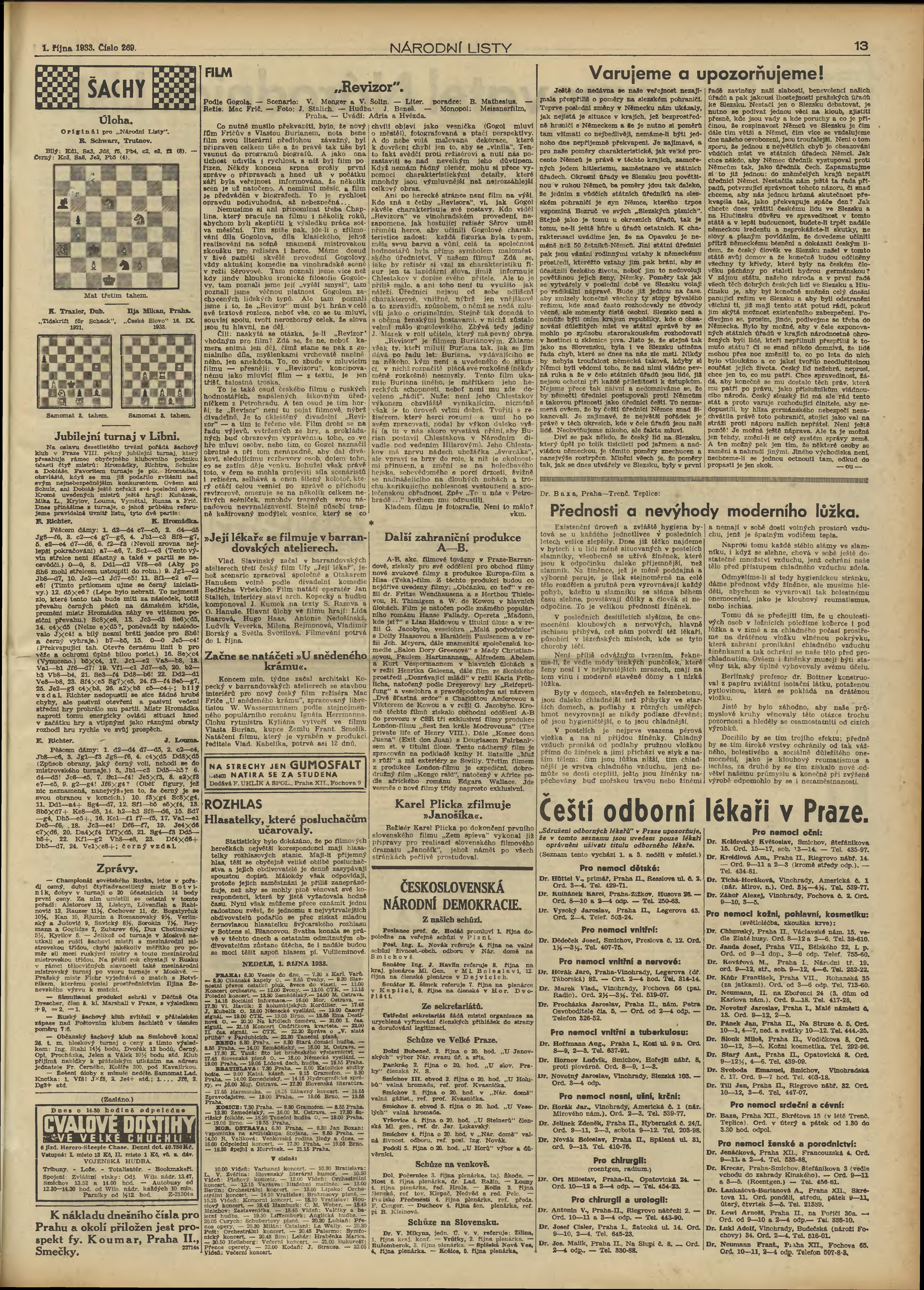 * Datum vydání výtisku: 1.10.1933 Číslo výtisku: 269