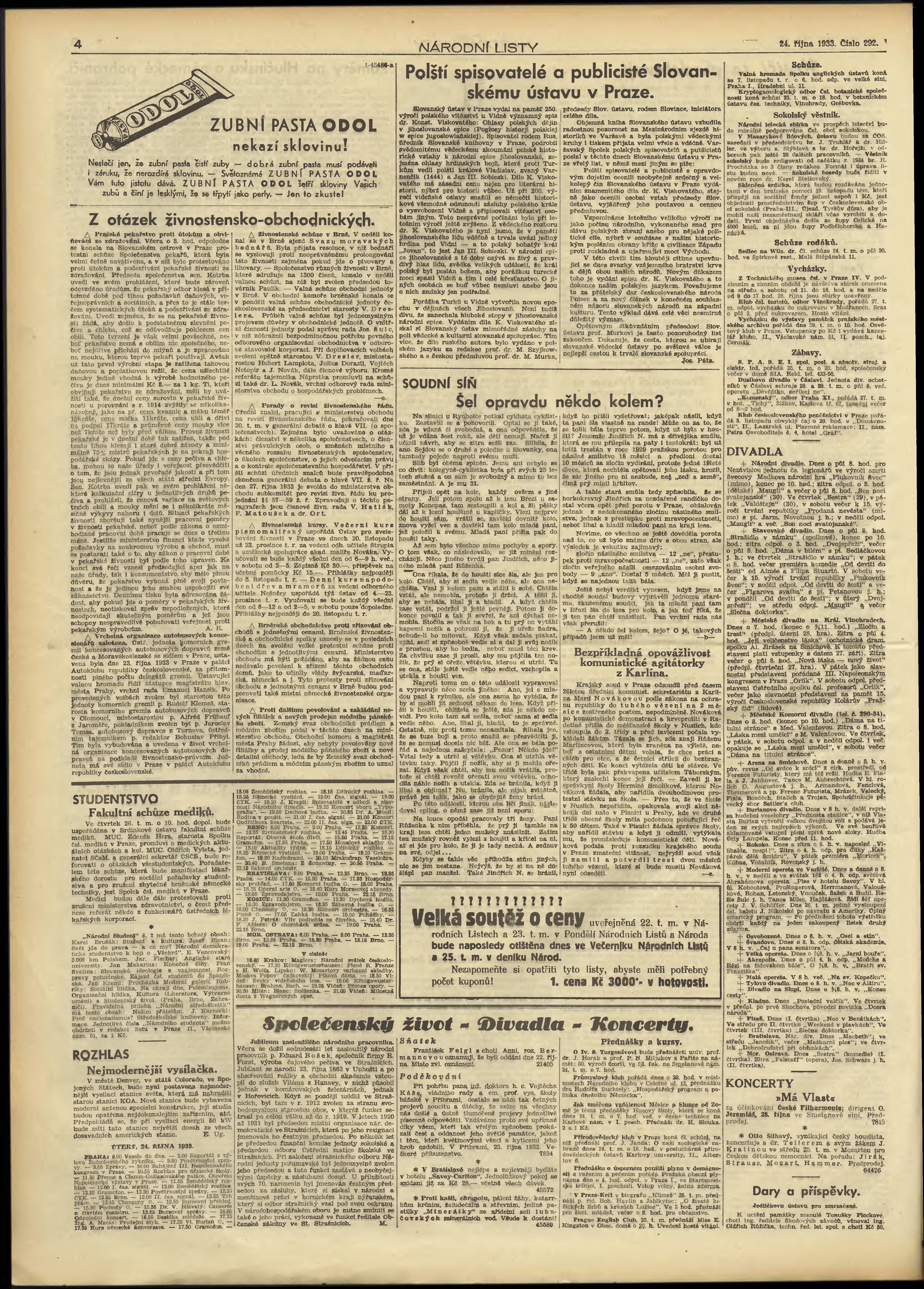 * Datum vydání výtisku: 24.10.1933 Číslo výtisku: 292