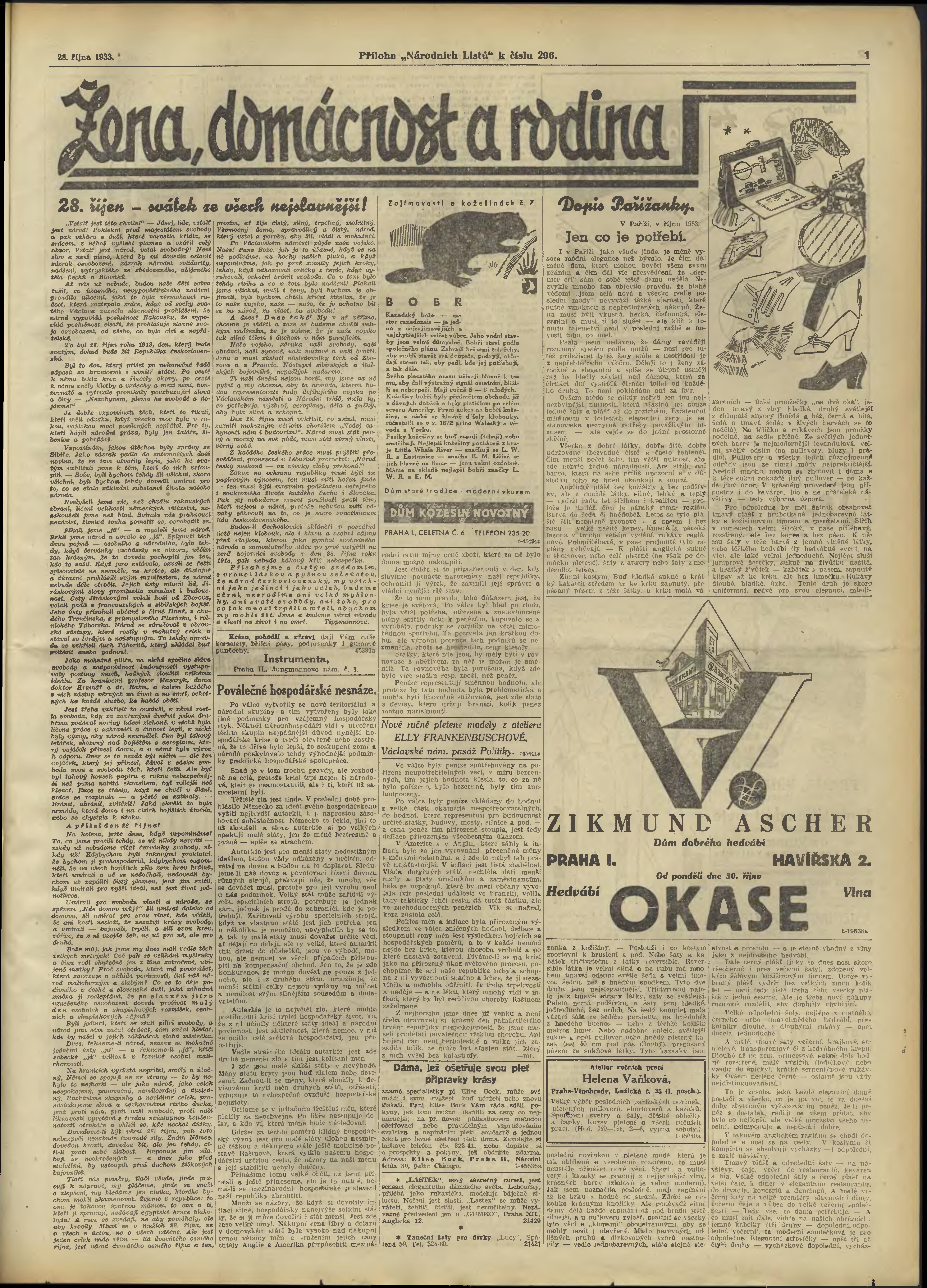 * Datum vydání výtisku: 28.10.1933 Číslo výtisku: 296 Typ výtisku: příloha