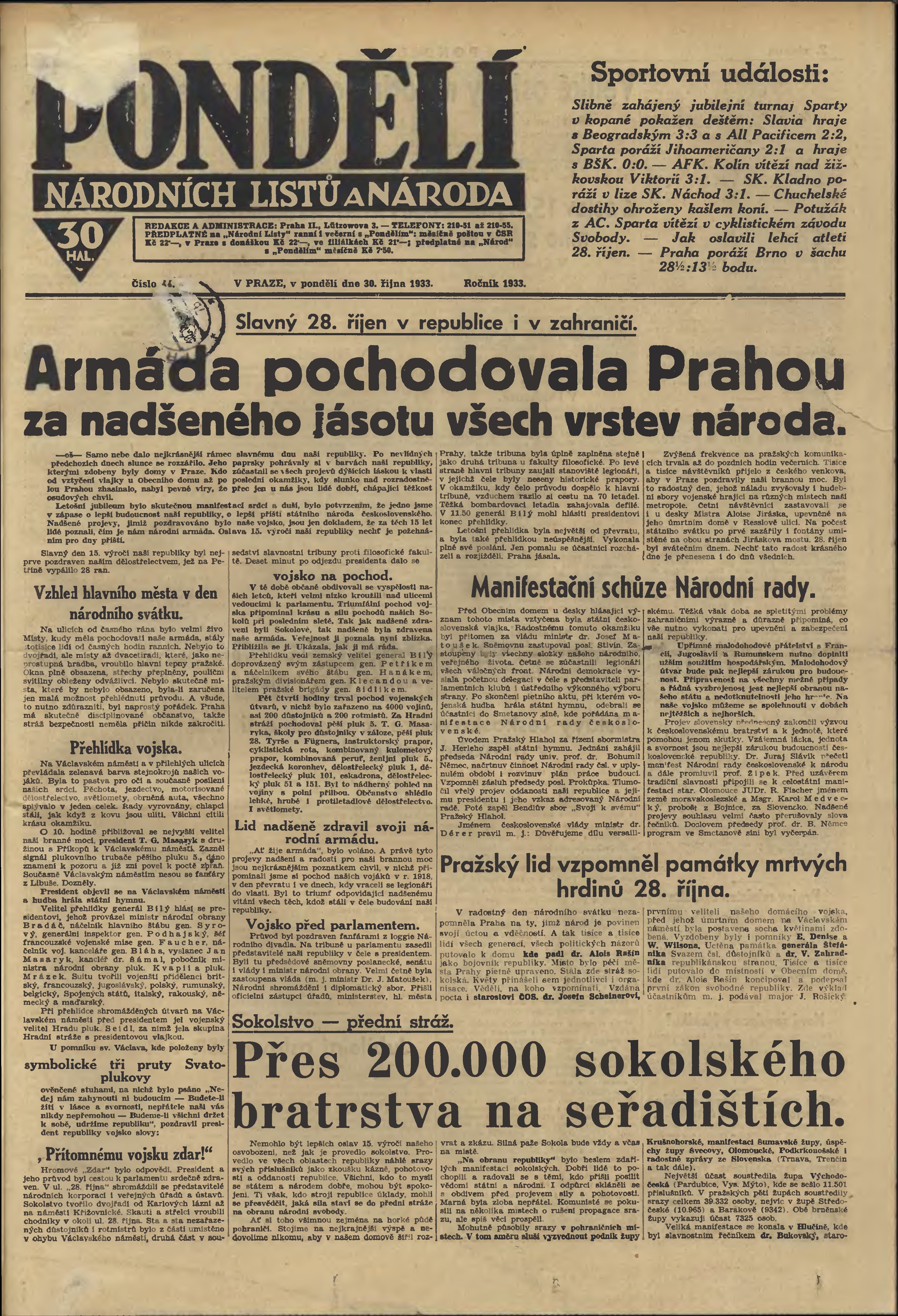 * Datum vydání výtisku: 30.10.1933 Číslo výtisku: 44