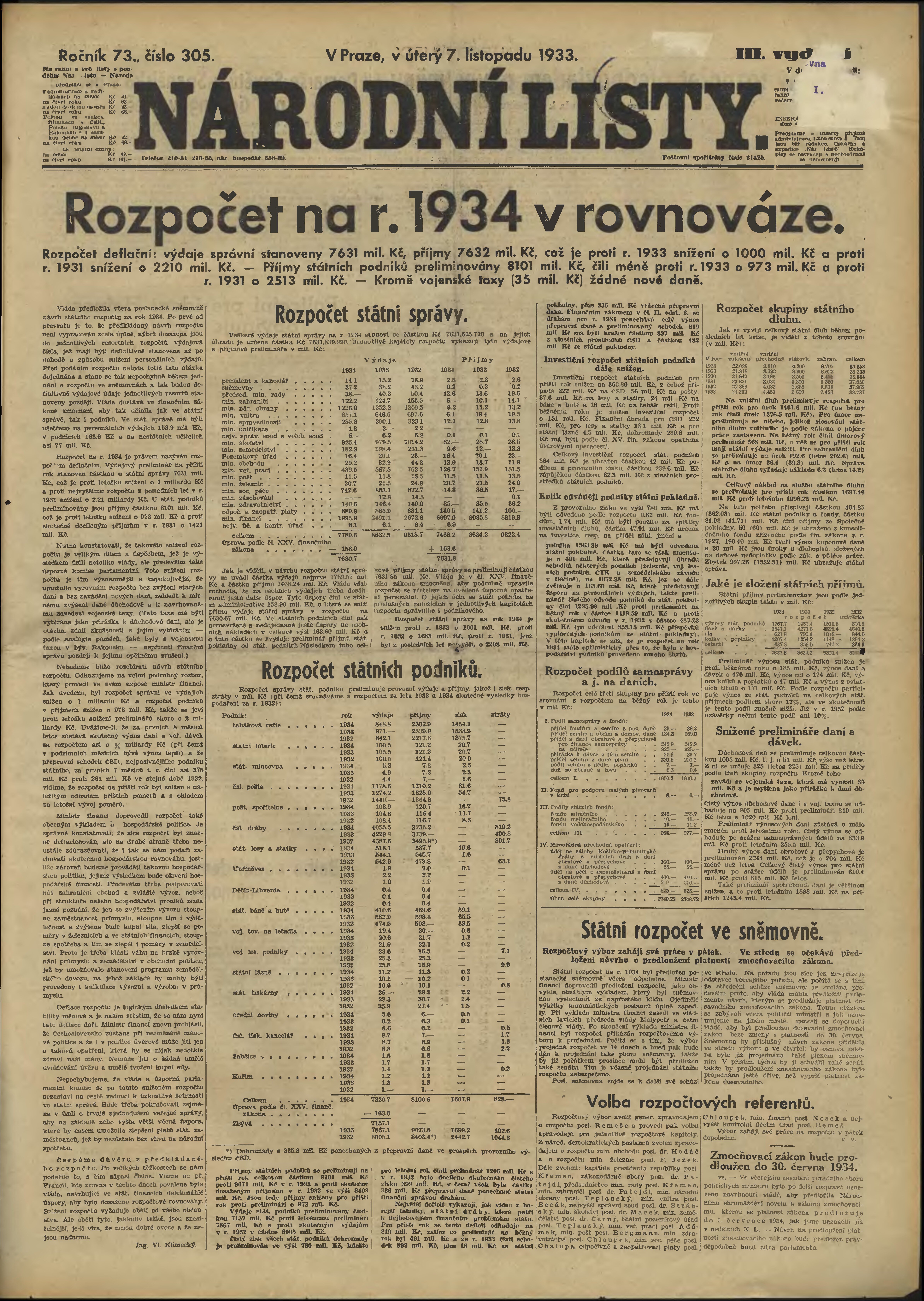 * Datum vydání výtisku: 7.11.1933 Číslo výtisku: 305